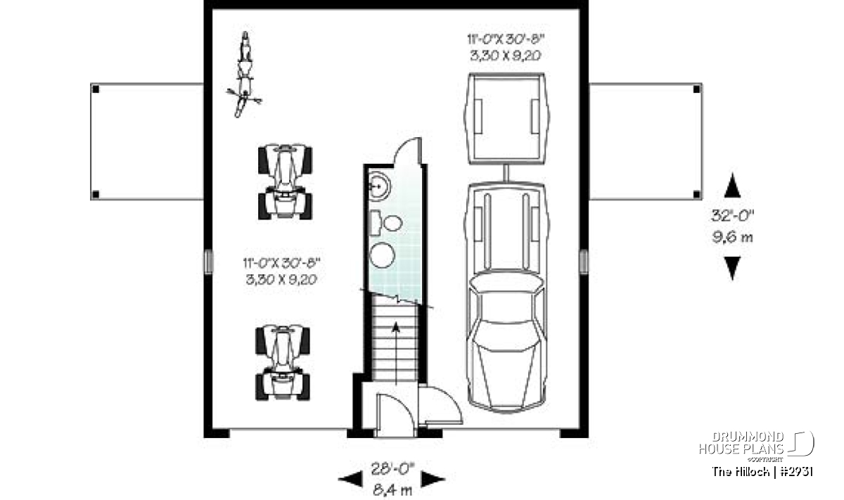 On the main level, we can first appreciate a most practical garage by its important depth and the fact that it will allow its owners a more than adequate apartment and the possibility of integrating a workbench over the entire rear wall.