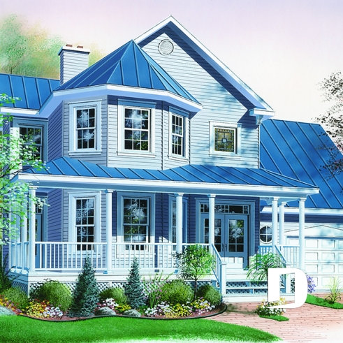 Here, nothing escapes the designer’s eye. A large gallery, linking the front and left façades, assures a covered access to the main entrance as well as to a second entry which opens into the dining room; an impressive turret projects out from the main façade and procures both charm and natural light to both the living room and master suite. A good sized lowered garage, which is often requested in new residential areas, proposes a very attractive bonus space above, which many homeowners will appreciate decorating as they fancy.