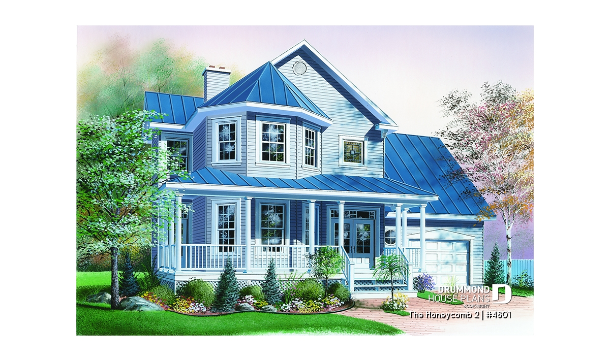 Here, nothing escapes the designer’s eye. A large gallery, linking the front and left façades, assures a covered access to the main entrance as well as to a second entry which opens into the dining room; an impressive turret projects out from the main façade and procures both charm and natural light to both the living room and master suite. A good sized lowered garage, which is often requested in new residential areas, proposes a very attractive bonus space above, which many homeowners will appreciate decorating as they fancy.