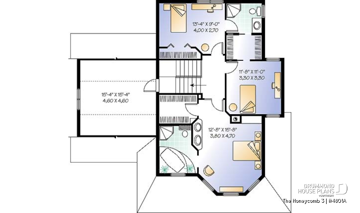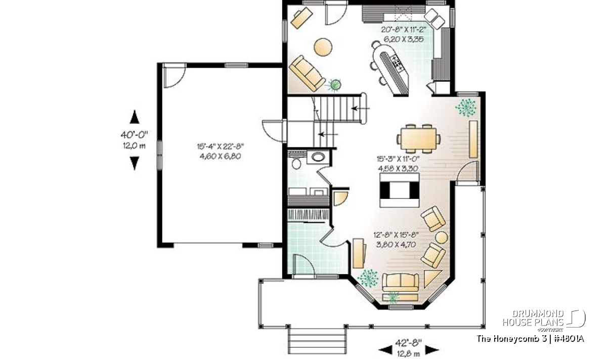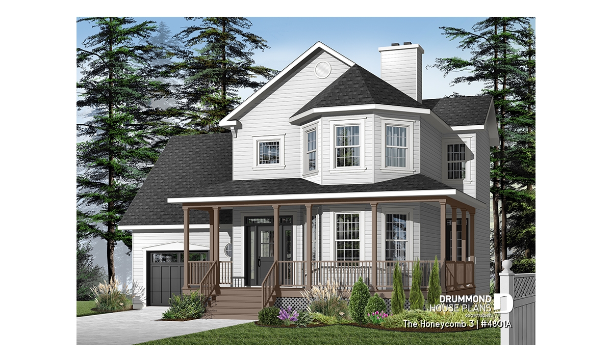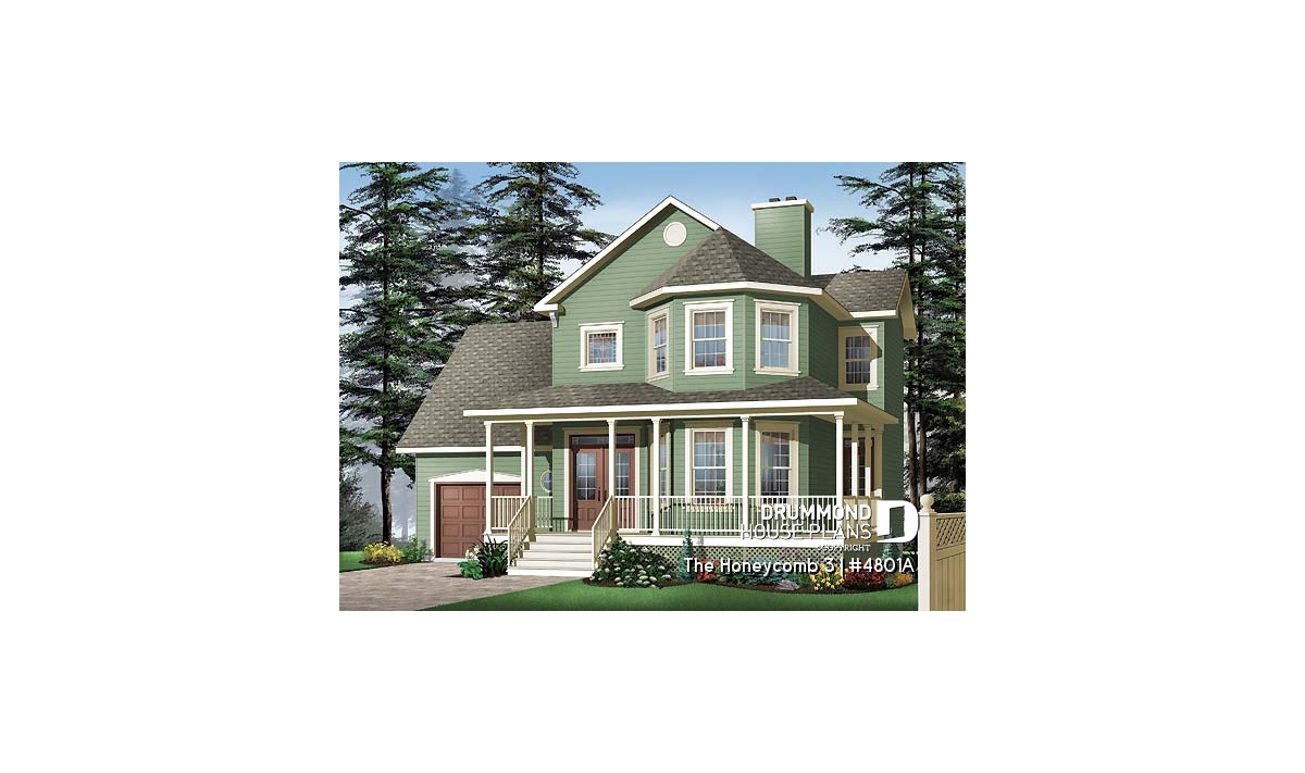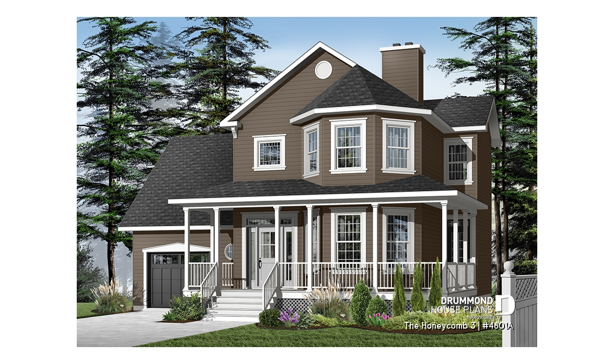 Here, nothing escapes the designer’s eye. A large gallery, linking the front and left façades, assures a covered access to the main entrance as well as to a second entry which opens into the dining room; an impressive turret projects out from the main façade and procures both charm and natural light to both the living room and master suite. A good sized lowered garage, which is often requested in new residential areas, proposes a very attractive bonus space above, which many homeowners will appreciate decorating as they fancy.
