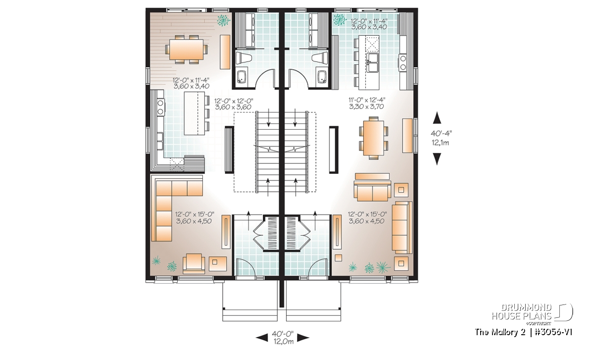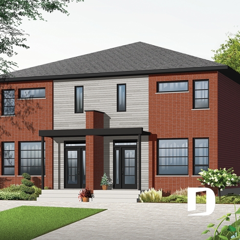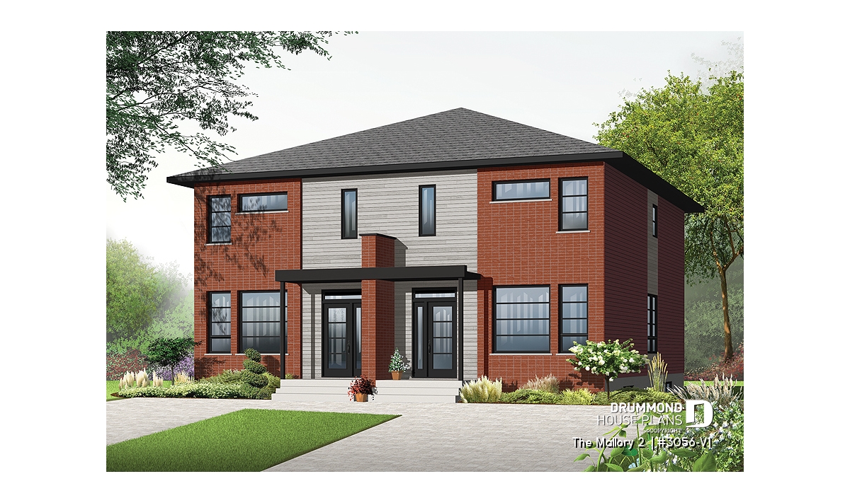 Floorplan options abound with plans 3056 and 3056-V1. Strategic planning of openings allow interchangeable interiors using one of the four layouts. Investors who purchase both plans enjoy very interesting combinations of two or three bedroom units. The units could be built as proposed or easily modified.
