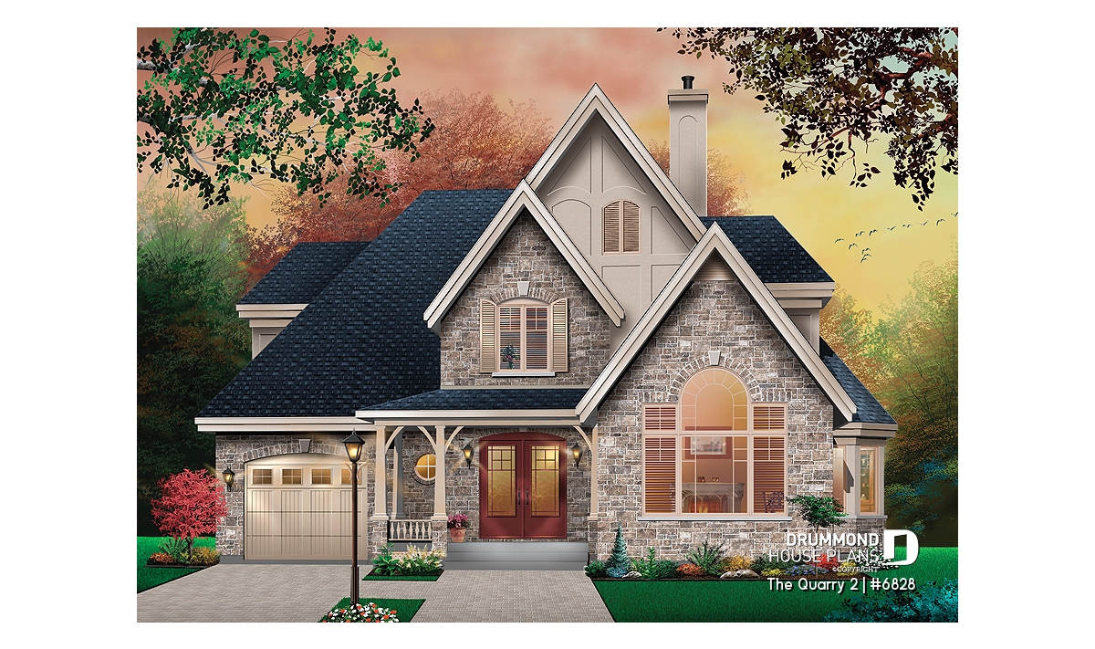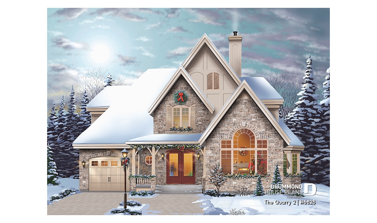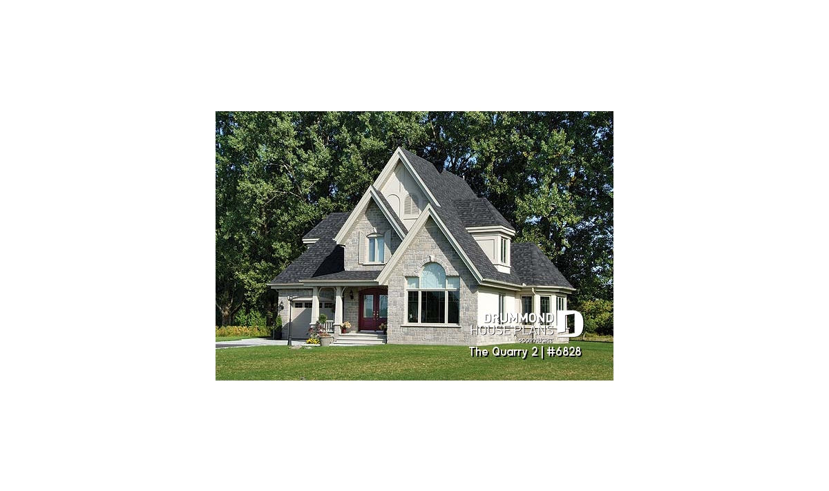 Designed with European spirit with the use of brick/stone on the main façade and partially at the base of the right façade, this blended with rough-cast coating on other facades as well as the gables and dormers, come together for a look that comes together very well. The garage of interesting format includes stairs to the basement and, despite a three way sloping roof, offers a most attractive room above with a dormer and excellent storage.