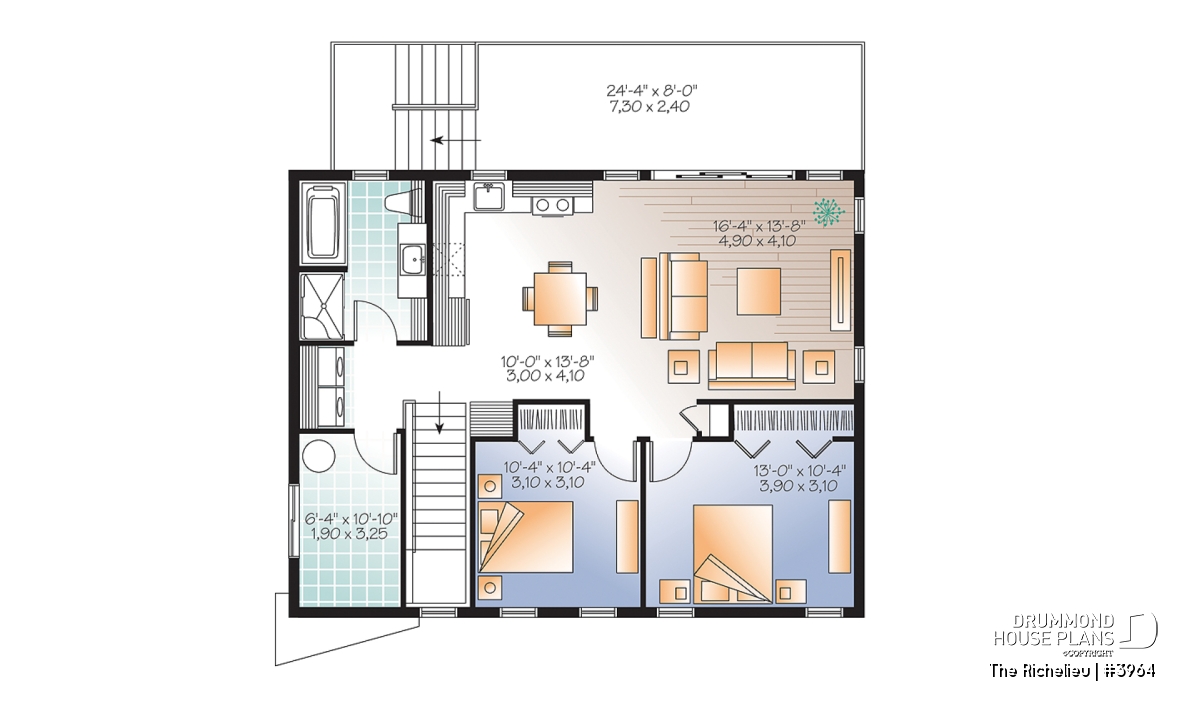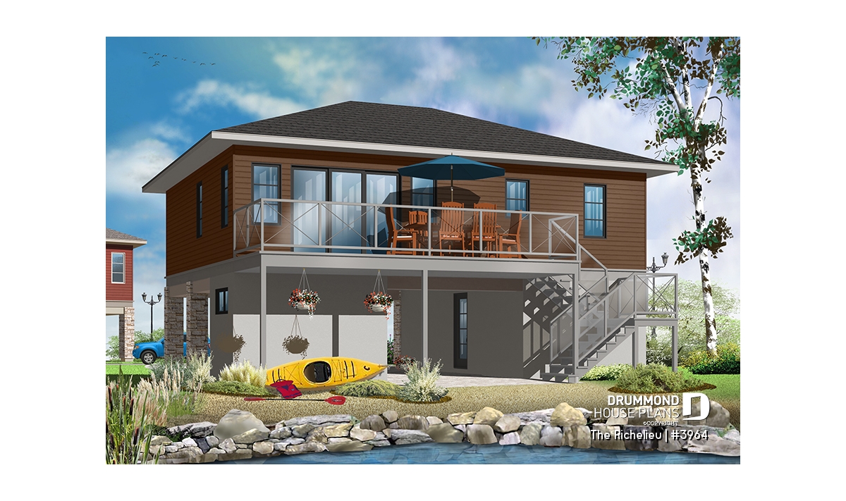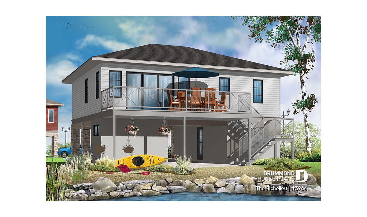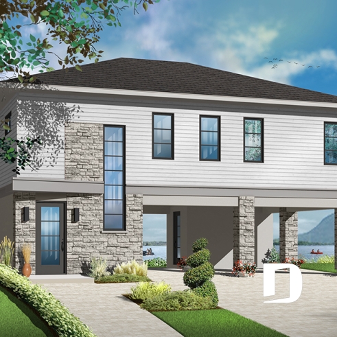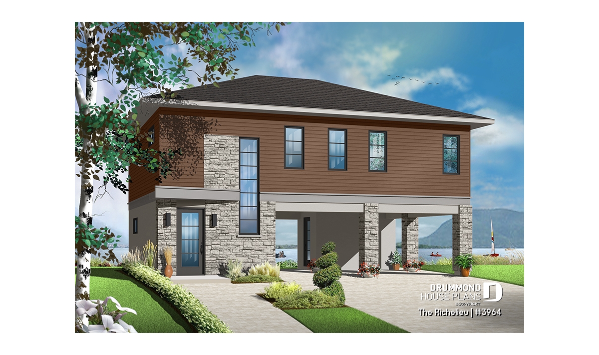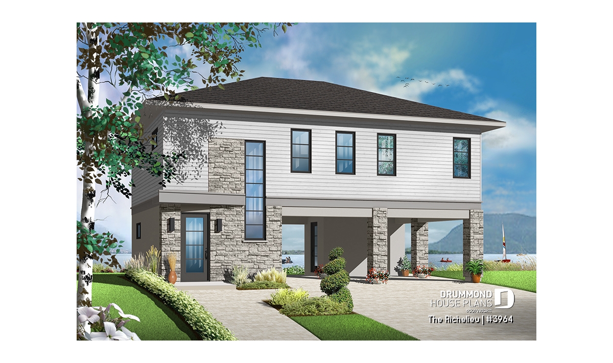 2011 was a year of many floods nationwide. Regrettably, this caused incredible hardship and stress to those located on affected floodplains. As homes are repaired or replaced, this risk is top of mind. In response to demand for home plans that would minimize potential damage in the event of a recurrence, we at Drummond House Plans have come up with a design which would be minimally affected by rising waters. In addition, rear oriented living spaces and panoramic views make this home particularly attractive.