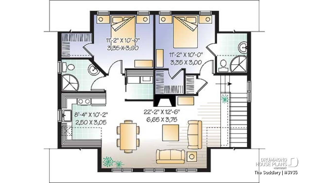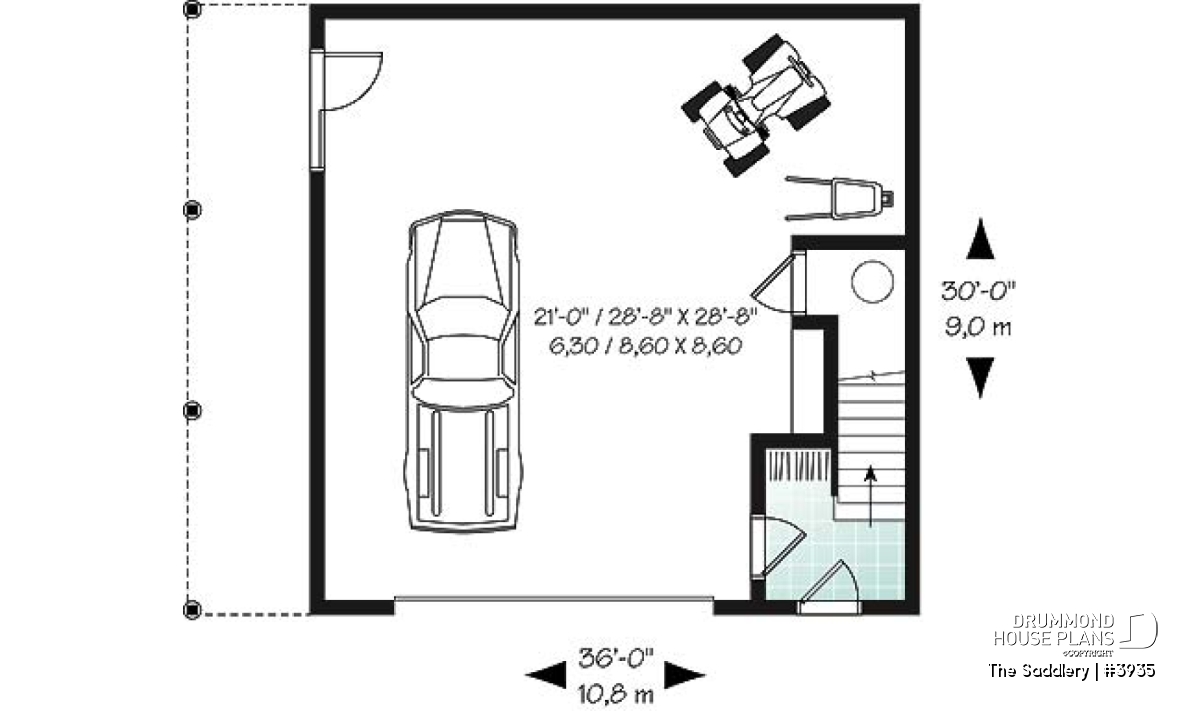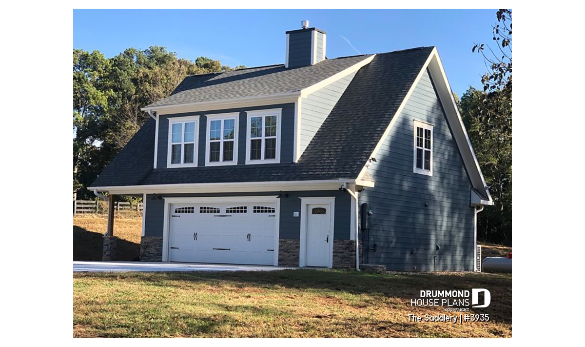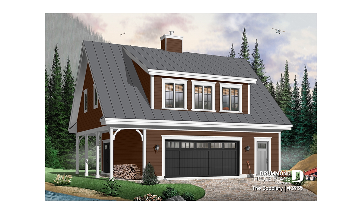 Two-car garage plan with accommodation upstairs.