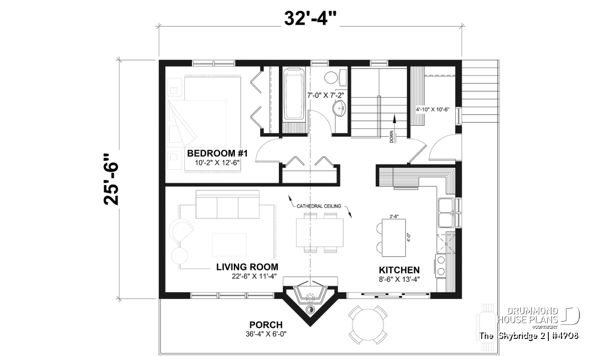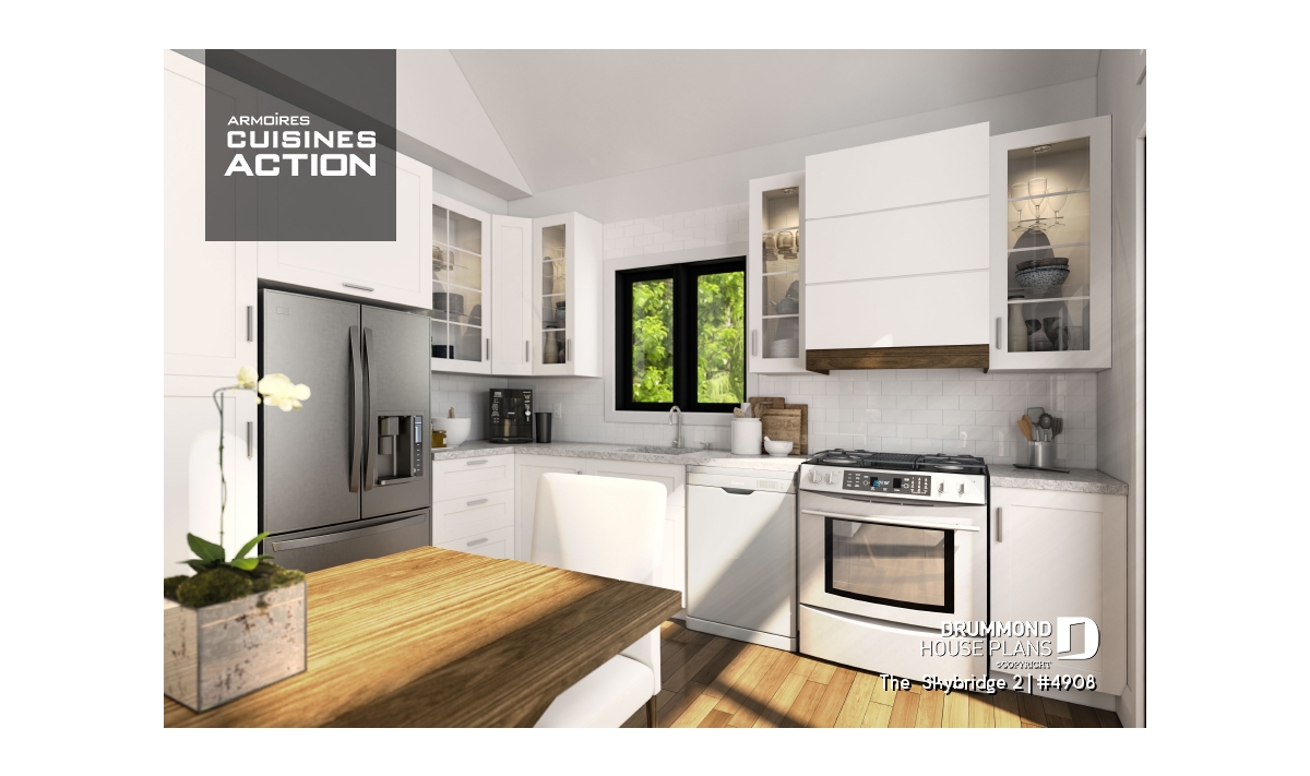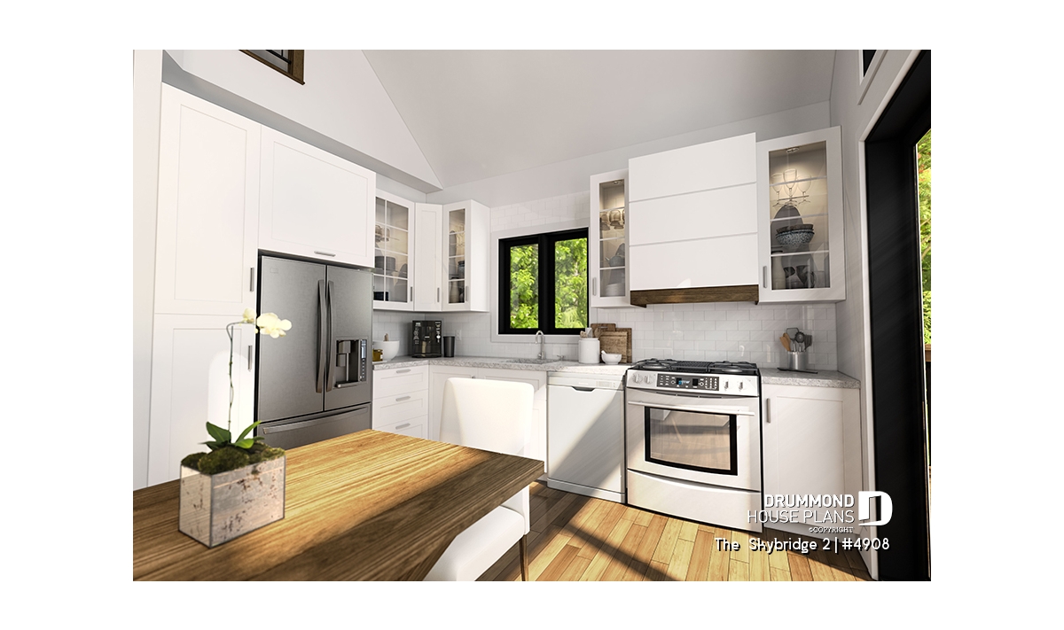 House plan SKYBRIDGE (#4908) offers a country cottage-style house with huge windows and 1,648 square feet.