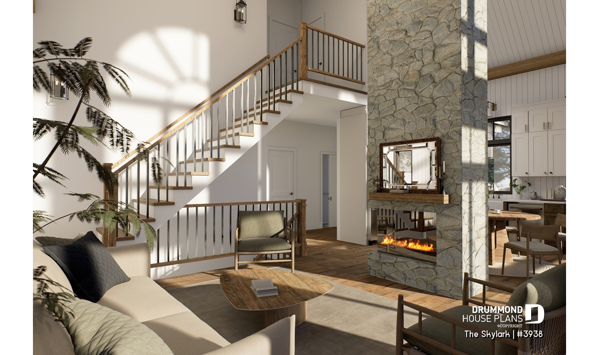 By blending rustic style, bright open spaces, and functional design, this Rustic 4-Season Chalet House Plan with loft and central fireplace is the perfect choice for anyone dreaming of a warm, welcoming, and versatile retreat surrounded by nature.