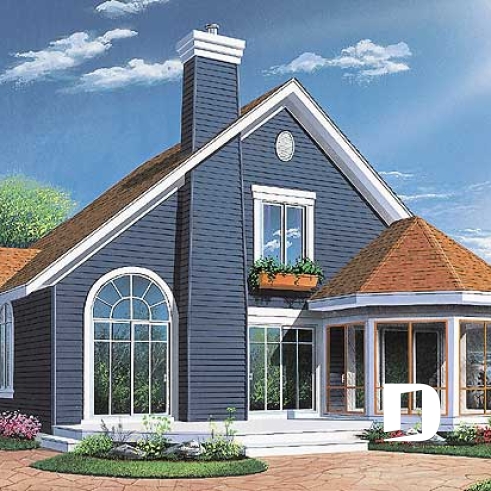 Popular cottage house plan, 3 beds, 2 baths, panoramic view, master on main, open space, mezzanine