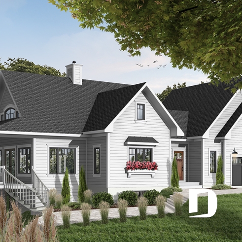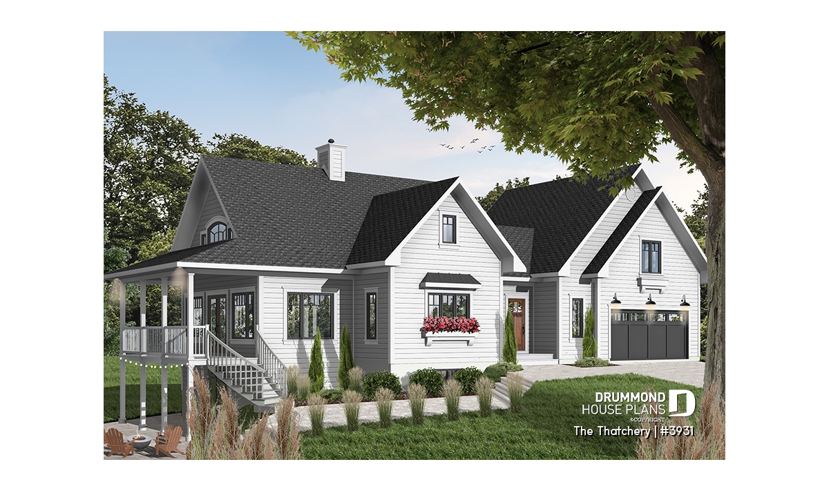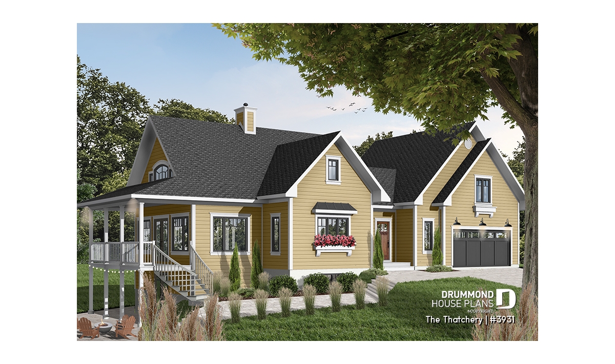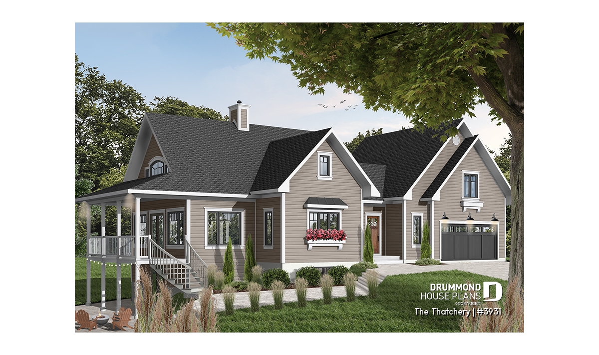Once again Drummond Designs proves to be listening to its clientele with this interesting variation of a very popular 4-seasons vacation home, by the addition of a double garage and even more liveable space. For you to consider.