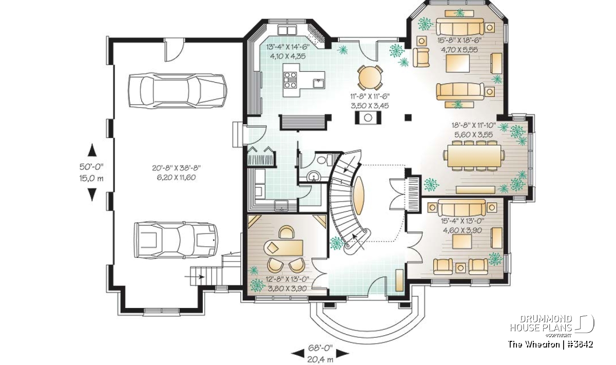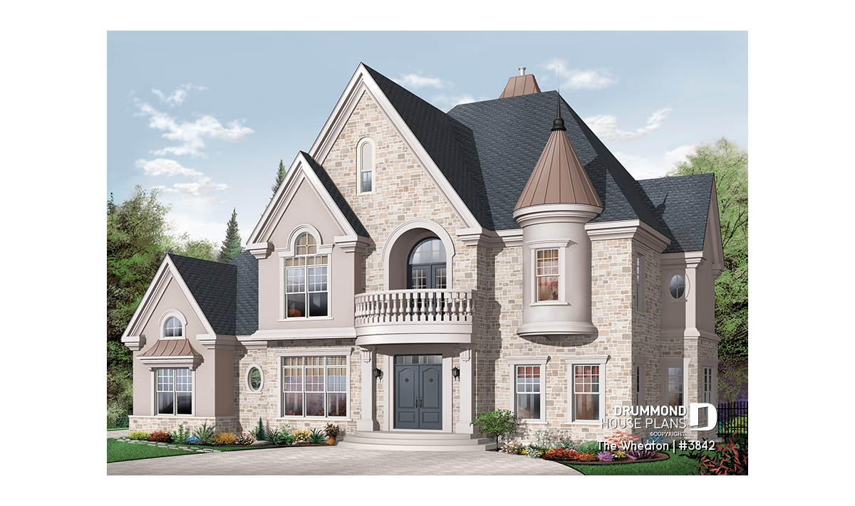 Fireplace, Mezzanine, Ceiling over 8', Basement access from garage, Gound floor laundry room, Office / Study / Den, Panoramic view, Side entry garage, Pantry, Island, Open floor layout, Living bonus space, Master suite upstairs, Guest suite, Sloped ceiling, Walk-in master bed., Balcony 2nd floor, Oversized garage, Separate bath and shower, Double sinks, Breakfast nook, Formal dining room