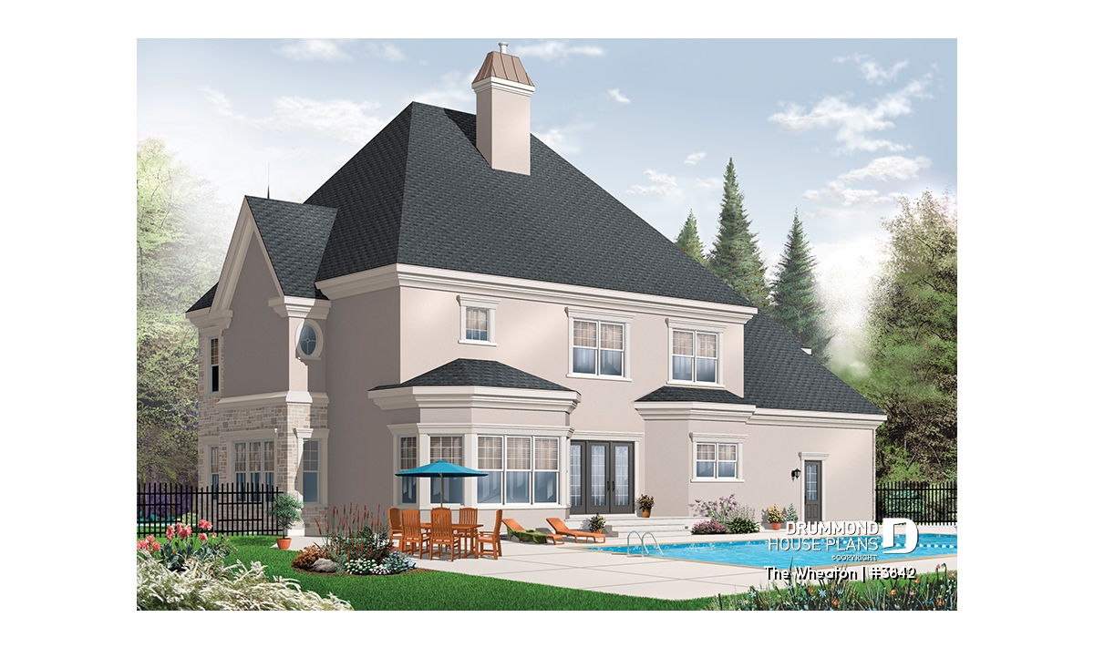 First, on the main level we can appreciate a 10 foot ceiling height over the entire floor, a spacious and well balanced staircase, a most enviable home office, a vast dining room, a more reserved living room at the front and a large family room open to the rear and to the center of activities. The breakfast area for its part is embellished by a fireplace and triple garden doors and blends in well with a very practical kitchen with strategic central island. To this is added a laundry room independent from a half-bath, and a triple garage which is more and more searched for in this type of home.