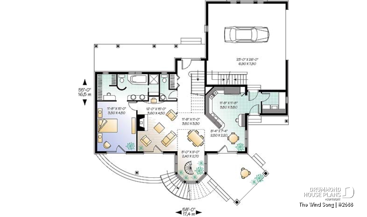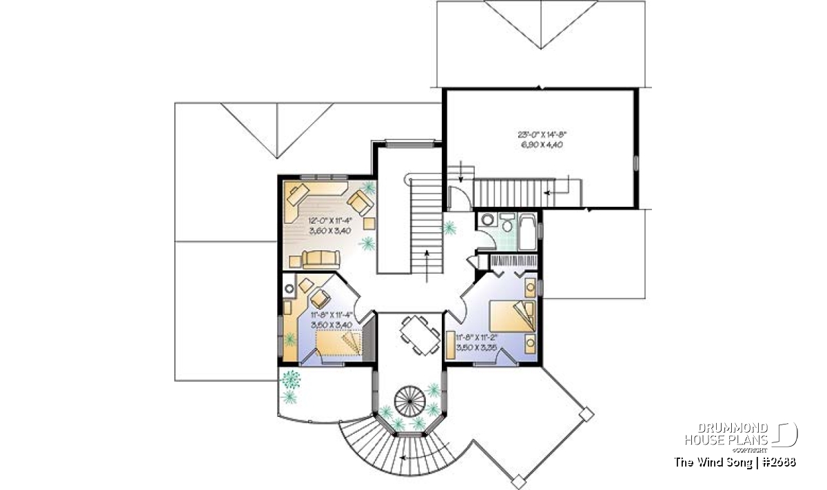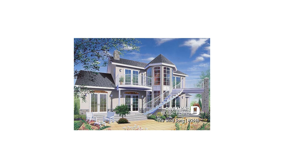 Other notable features of this model: first, access to either a porch, a balcony or a terrace from each of the bedrooms. Exterior access also from the living room and from the breakfast area for which a covered terrace provides a lovely outdoor room. Next, a vast bonus space above the garage to which we gain access from the garage and from the upper level for even more convenience. Related model 2688A, is reversed and of a different colour, in order to provide other options.
