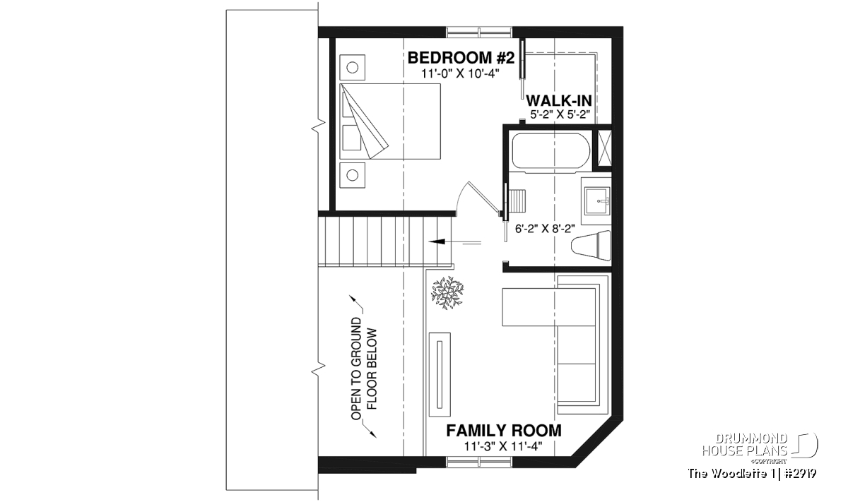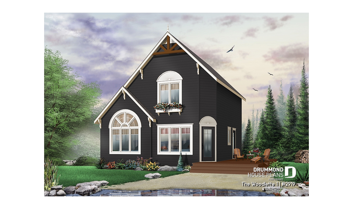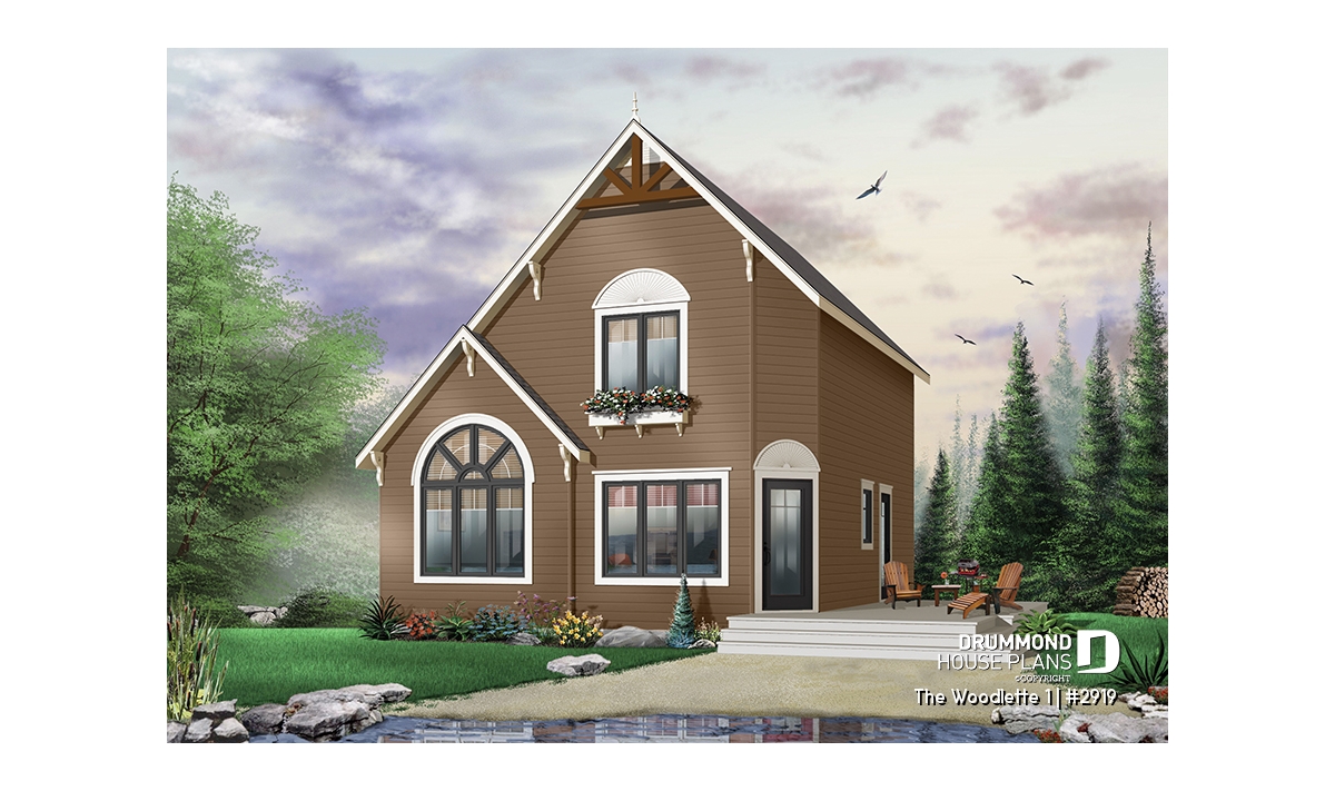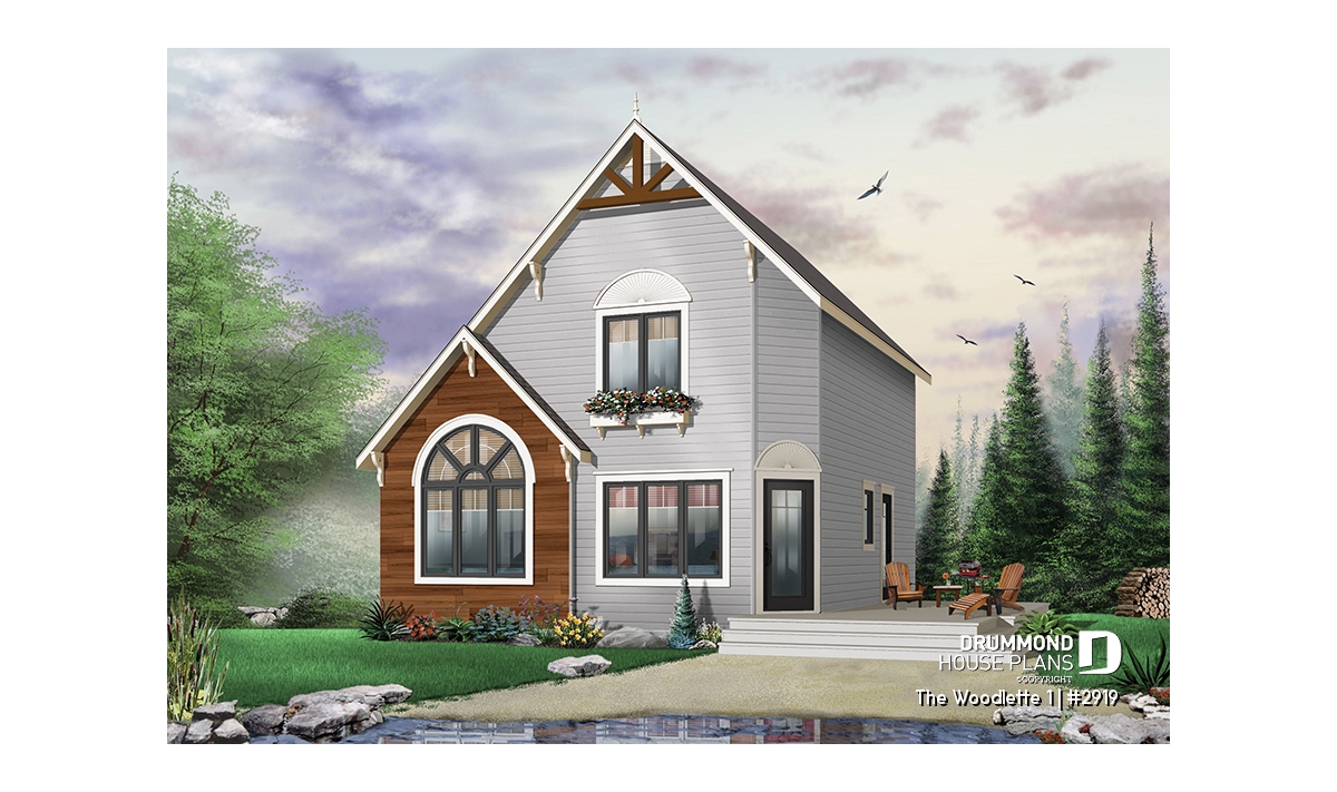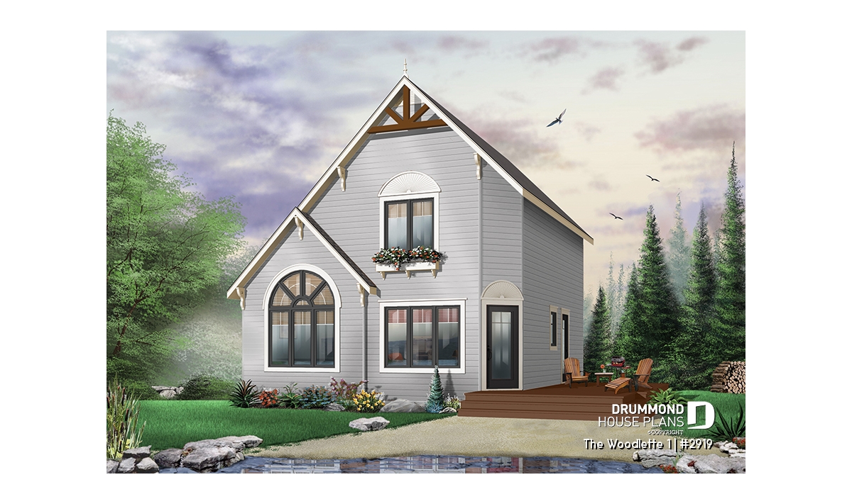 2 to 3 bedroom affordable modern style house plan, lots of natural light, cathedral ceiling + mezzanine