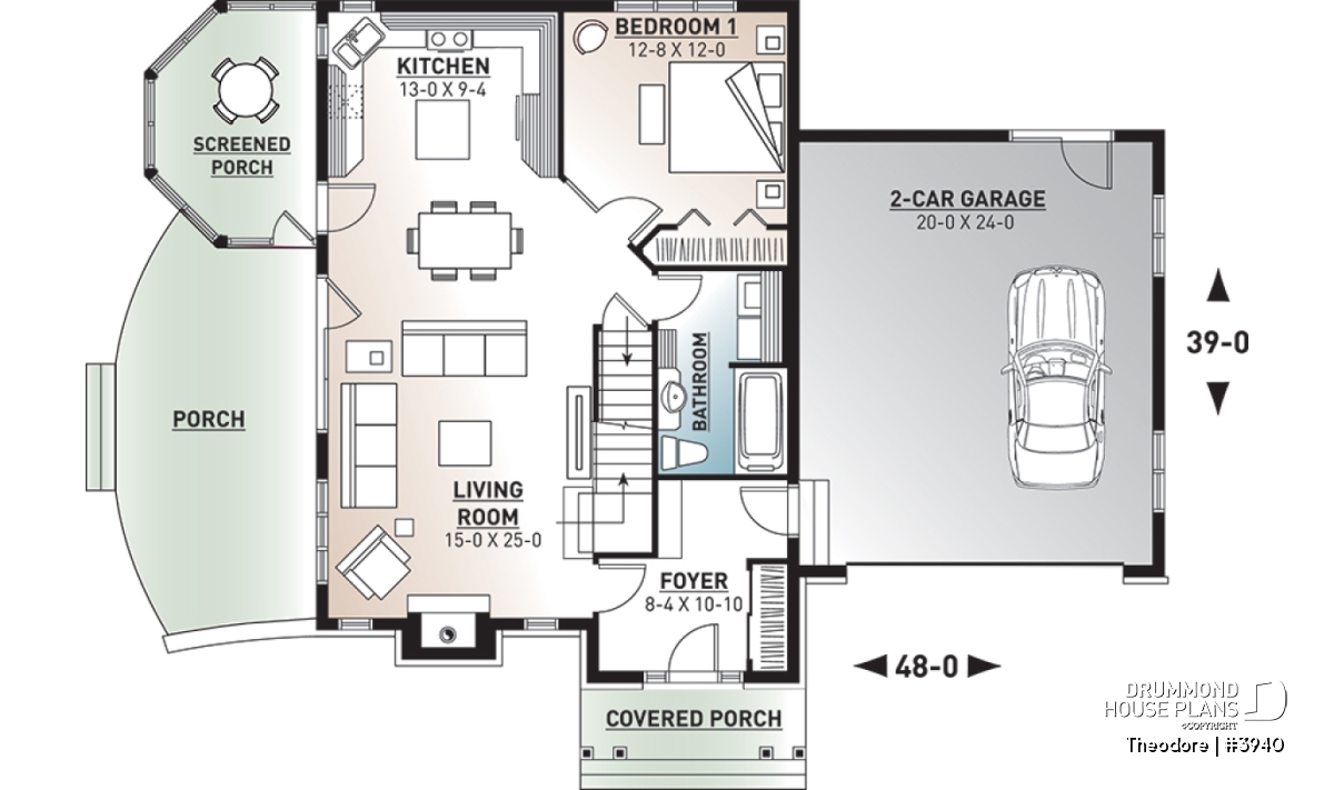 Screened porch, Fireplace, Living bonus space, Entrance hall, Gound floor laundry room, Island, Sloped ceiling