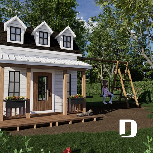 Inspired by our country-style house plan ACELIA 2 (#1875-V1), this beautiful children’s playhouse perfectly captures the charm of traditional countryside homes. With its classic lines, thoughtful details, and architecture influenced by both country and colonial styles, it looks like it came straight out of a storybook.