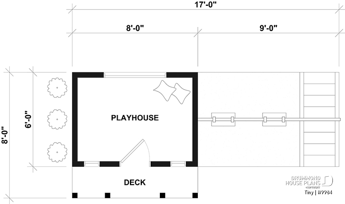Small 8'-0" x 6'-0" Playhouse for Kids, with 9'-0" x 6'-0" Swing Set — Made for Playing, Dreaming, and Having Fun!
