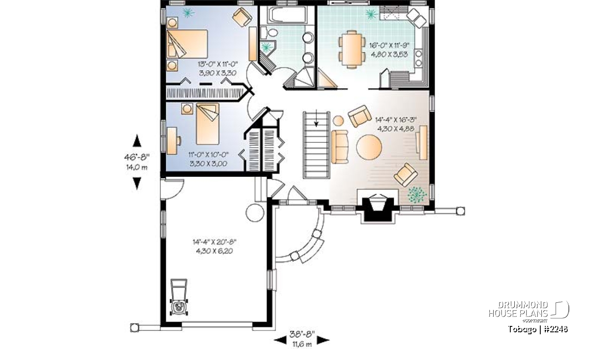 Width 38'8" Depth 46'8"