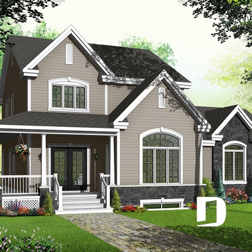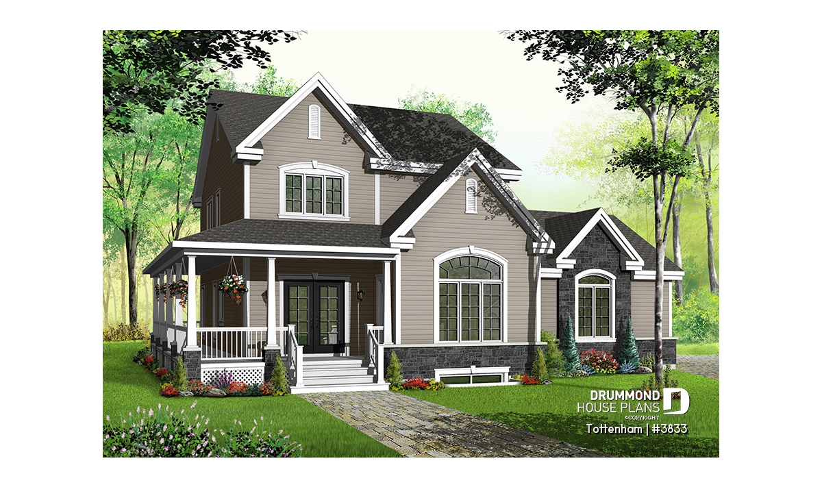 Peaked roofs, and quaint front porch augment the sun-loving Palladian windows and spectacular 2245 sq.ft. layout. Main floor features a wide foyer entry, family room with fireplace, half-bath, dining room, and kitchen with island and breakfast area. Upstairs, the master suite with walk-in closet luxuriates with private spa-style bathroom. Two secondary bedrooms, with charming windows, share a generous full bath.