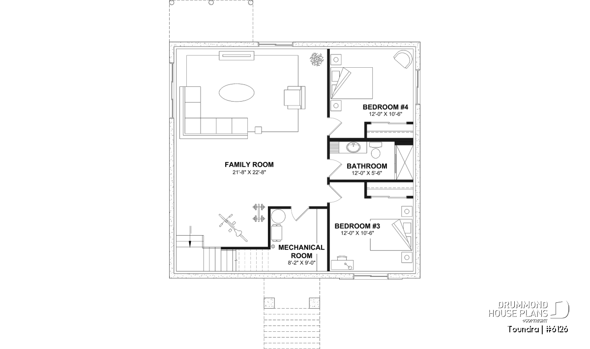 *If you wish to purchase the finished basement plan, as presented on this plan page, please select this option in the shopping cart, in the "Selection of foundation type" section. If you do not select this option, you will receive the unfinished full basement option, at no extra charge.