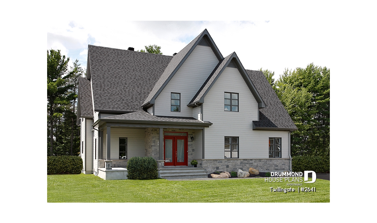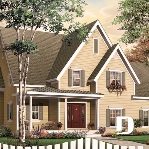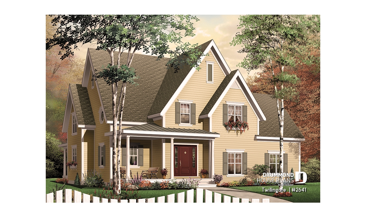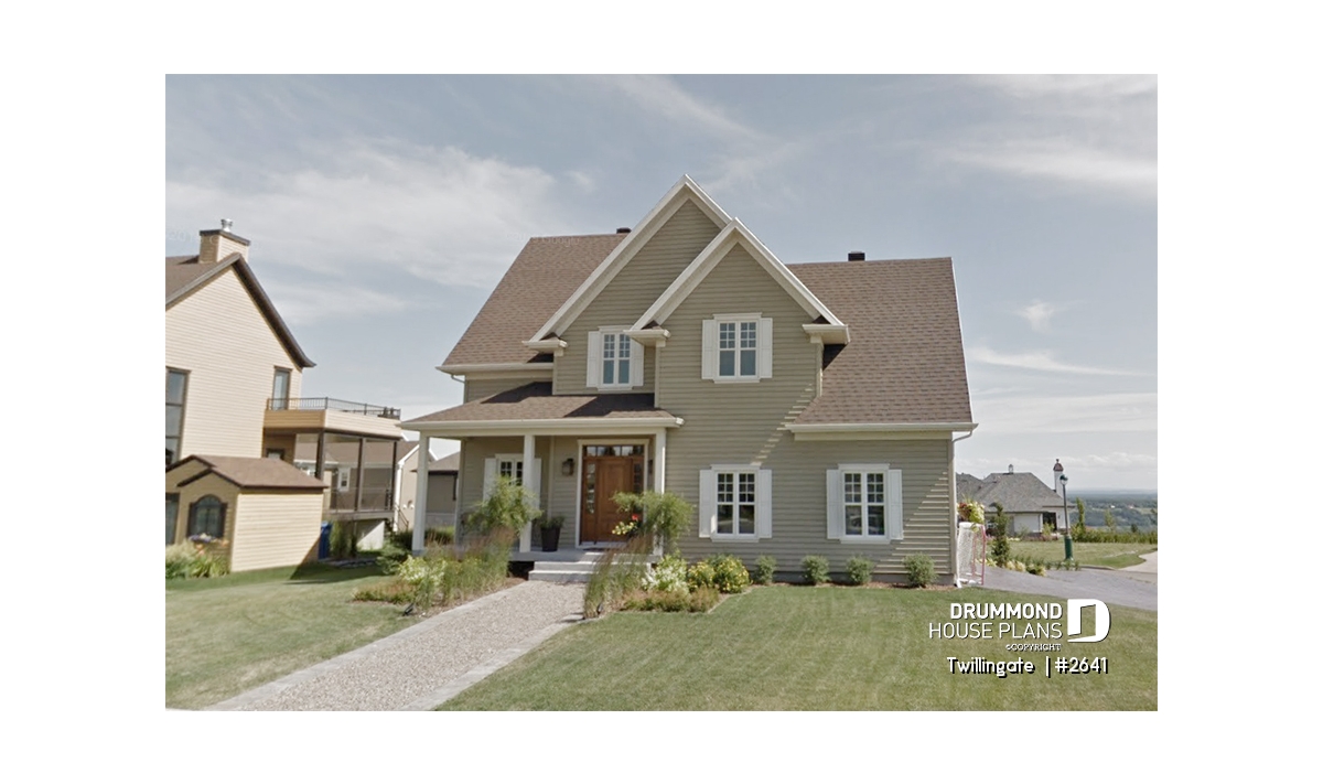 This cottage-style charmer plays down the garage presence with discreet side access. Within, the floor plan includes 3 planned bedrooms with the feasibility of 2 more in the large bonus space above the garage.