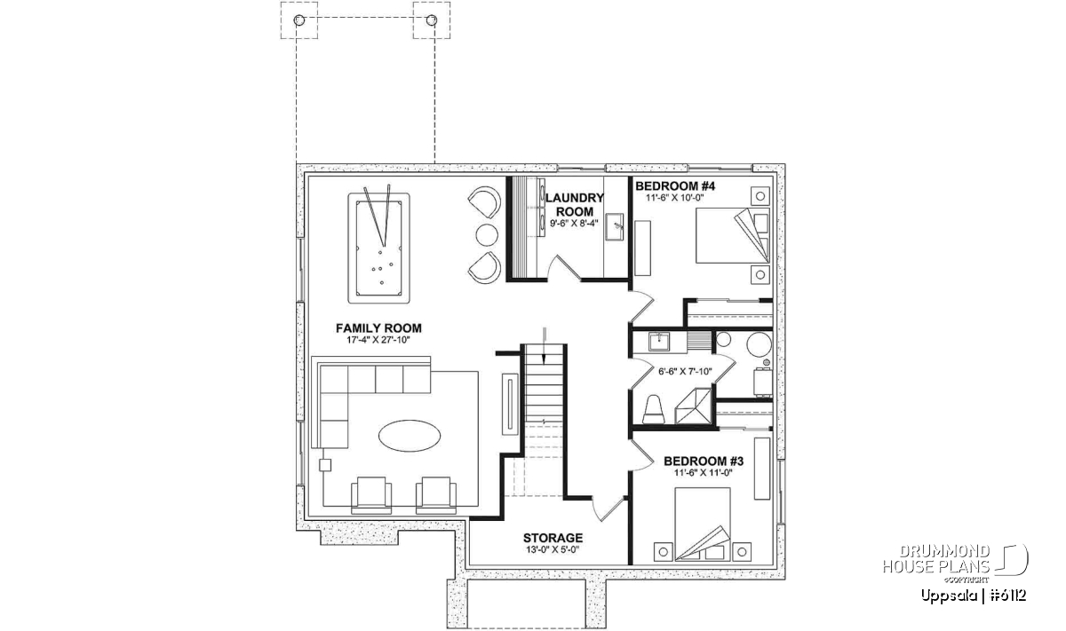 *If you wish to purchase the finished basement plan, as presented on this plan page, please select this option in the shopping cart, in the "Selection of foundation type" section. If you do not select this option, you will receive the unfinished full basement option, at no extra charge.