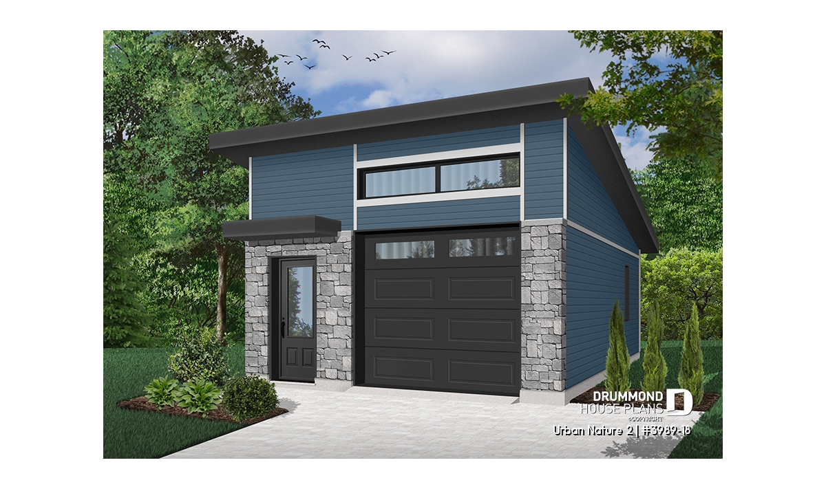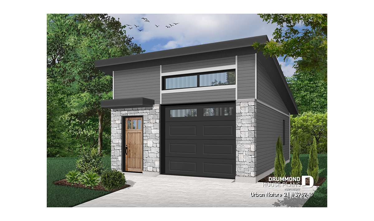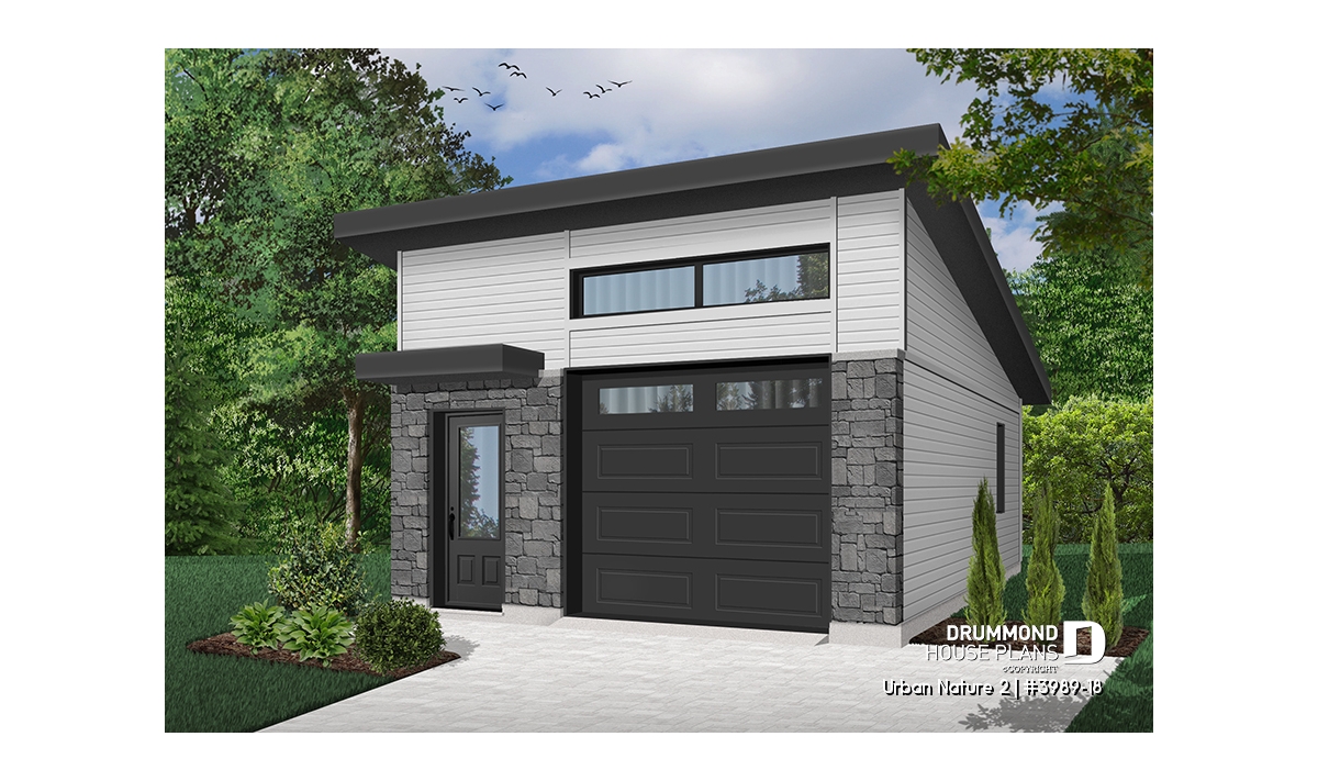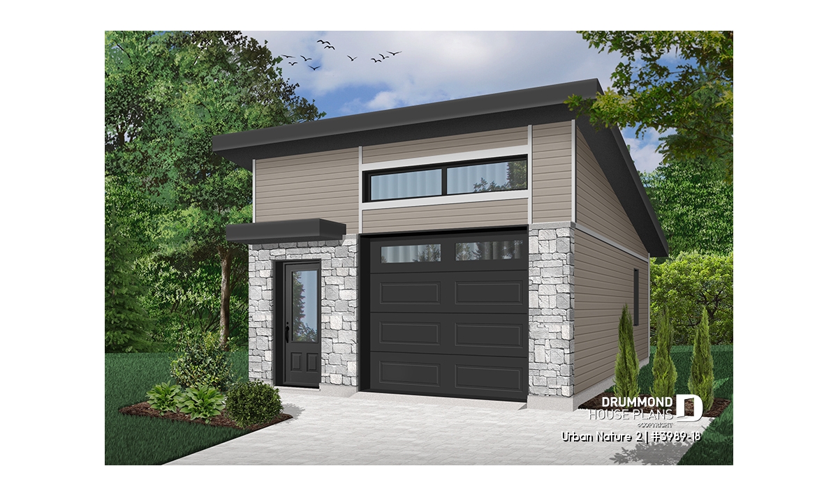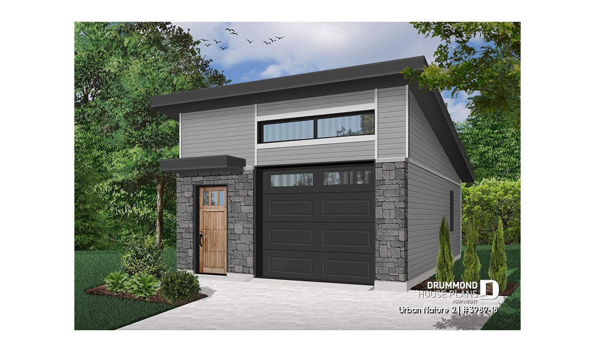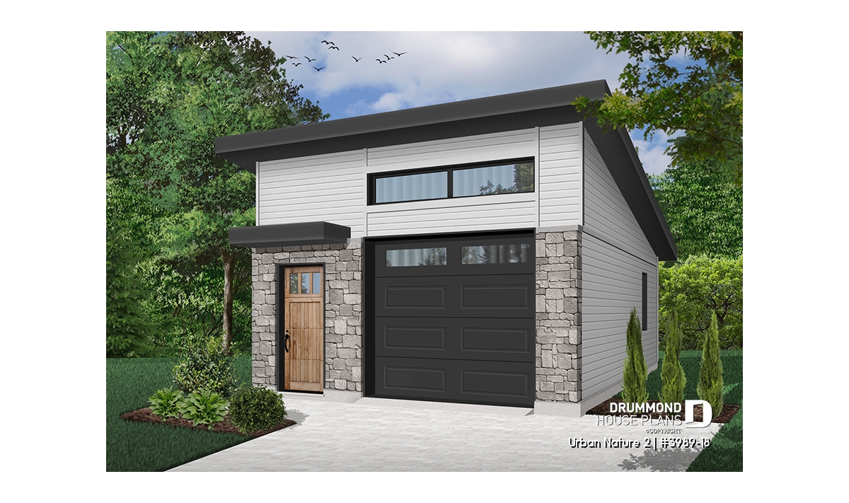 Enjoy this modern style one car garage that offers great natural light through it's large top window as well as conveniently placed side windows.
