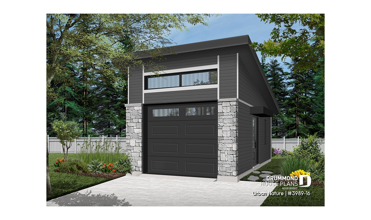One-car garage, ideal for modern home design, with lots of natural lights, variable ceiling height