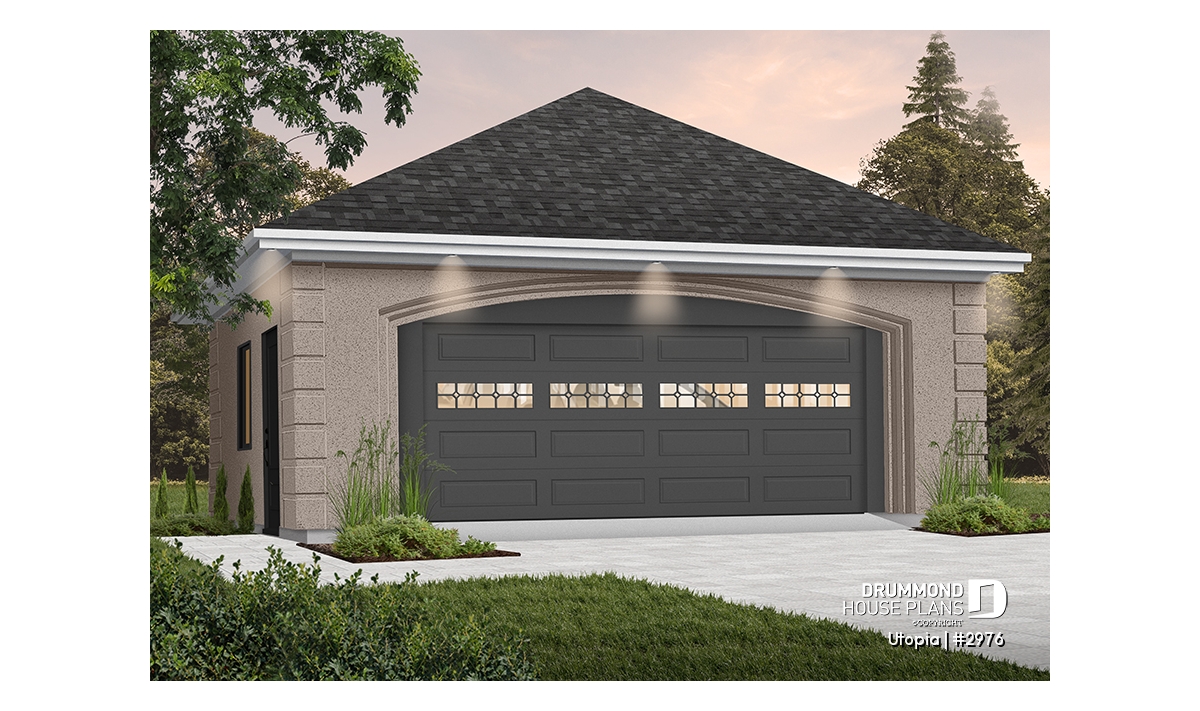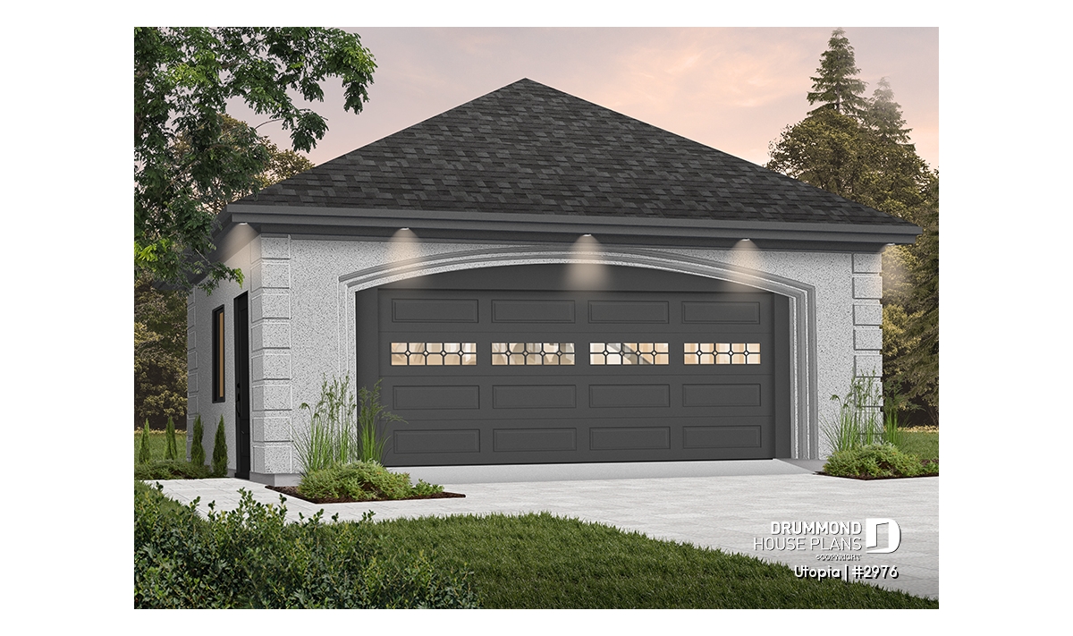Two-car garage plan with side door. PDF and blueprints available.