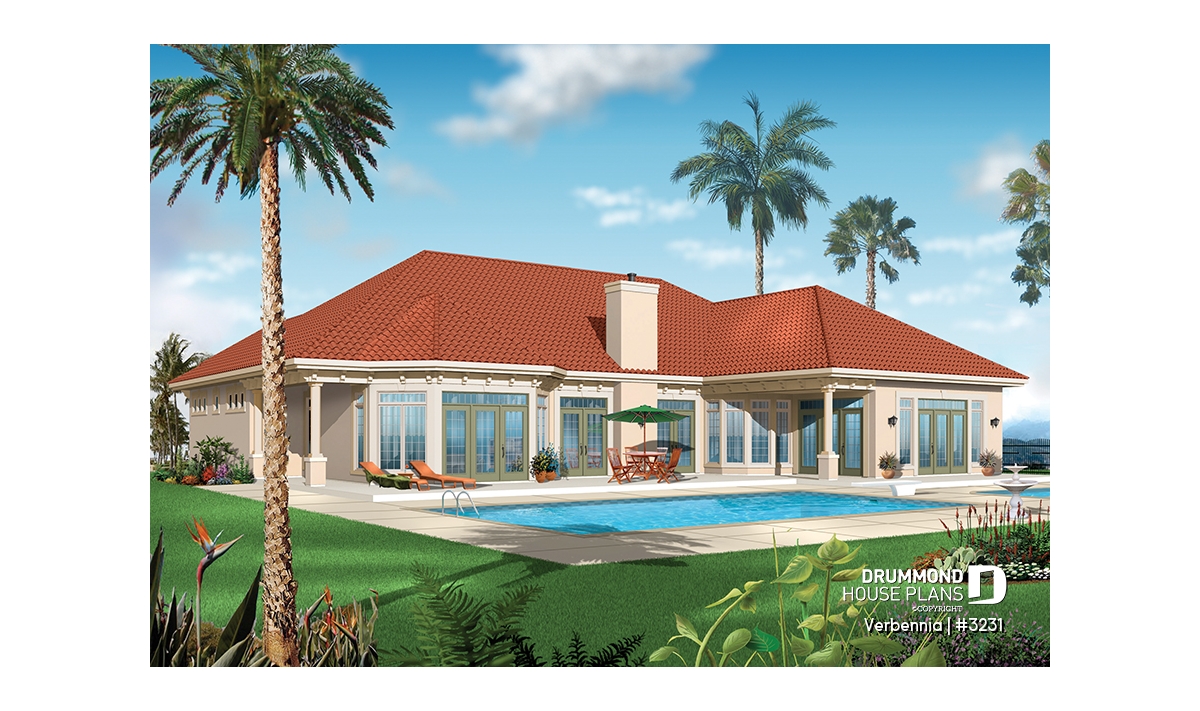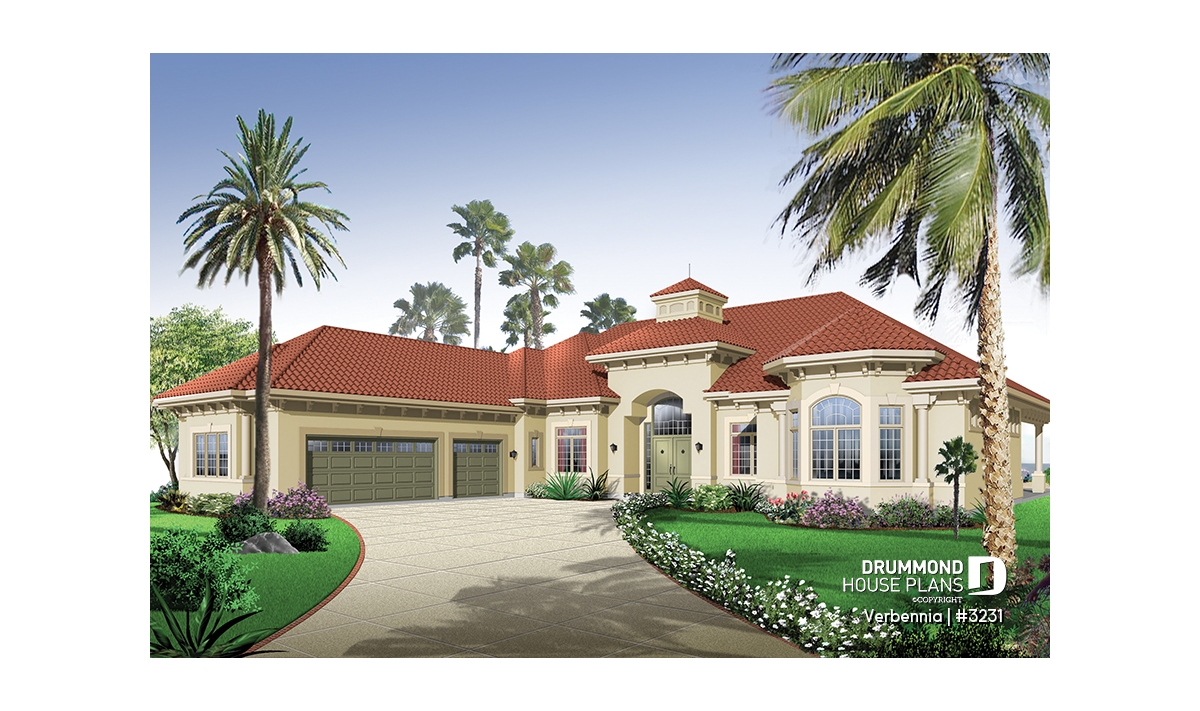 Arched ceiling at 13' max in main entrance. Ceiling at 10' everywhere, except for master suite and family room. Abundant windows at rear. Built-in shelves or storage in family room, kitchen, office, and bedroom 1. Fireplace in family and living rooms. Superb master suite with great storage and remarquable bathroom. Well organized kitchen with island / lunch counter and well illuminated dinette area. Three-car garage.