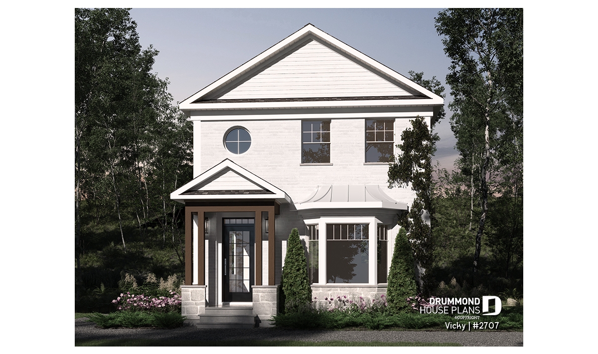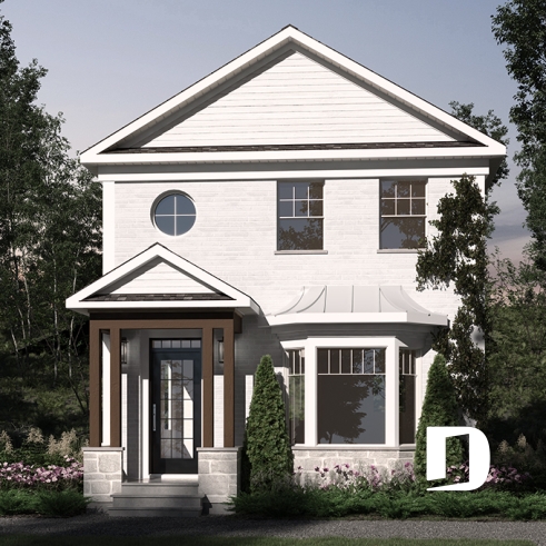 Small modern Victorian-inspired house, very attractive for narrow lots.