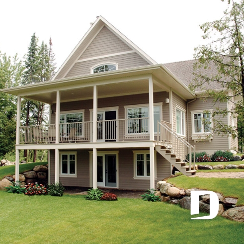 This member of our collection is much appreciated by owners of a panoramic lot. Because of the several rooms which offer a view of the scenery, this plan is especially well suited to this kind of scenery.