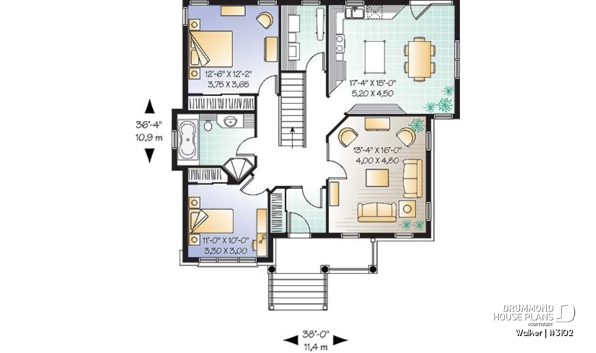| Width | 38'0" | Depth | 36'4" |