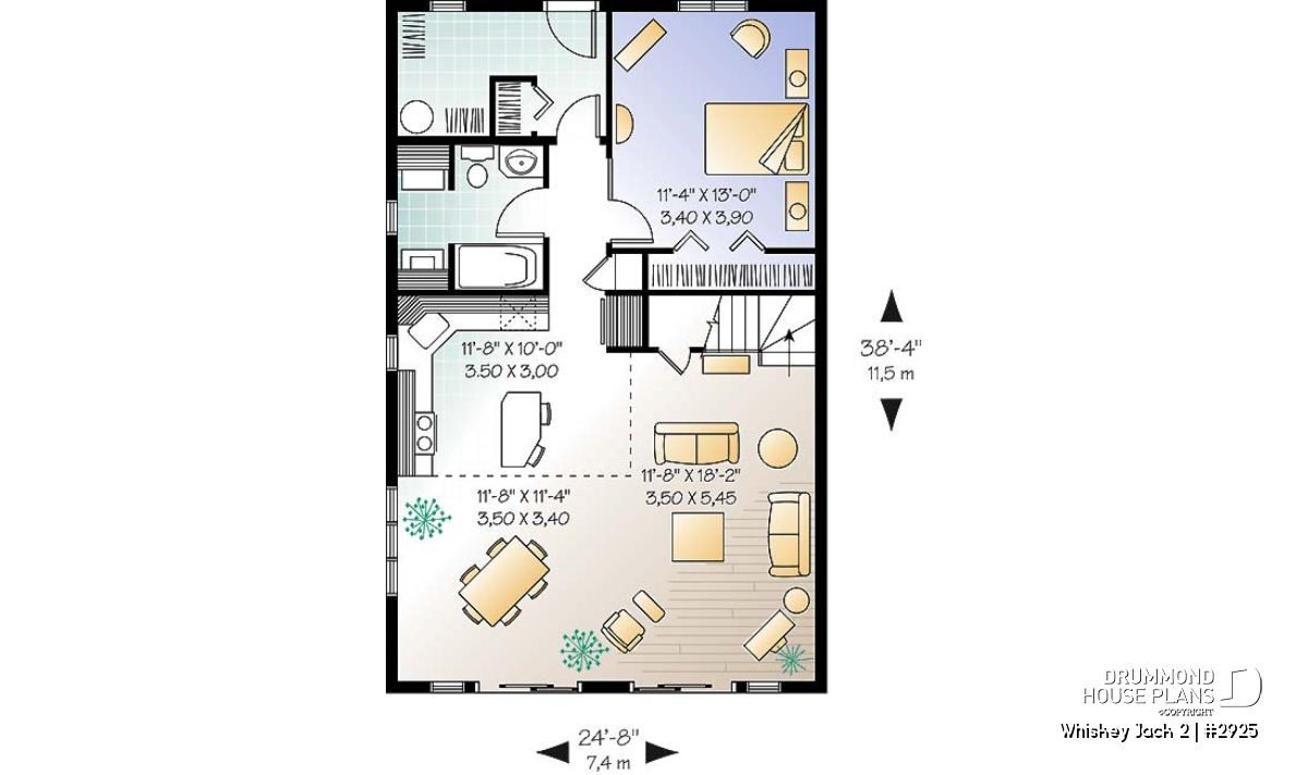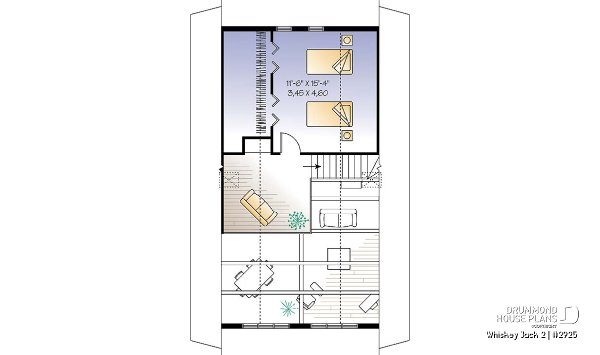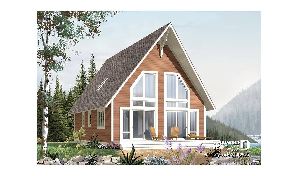 Vaulted ceilings with timber details great you in this two-bedroom chalet plan. Expansive windows paint the open activity area in light. The master bedroom on the main floor makes this an ideal getaway property, even for baby boomers. Main level laundry, a full bathroom and generous entry with storage complete the main level amenities.