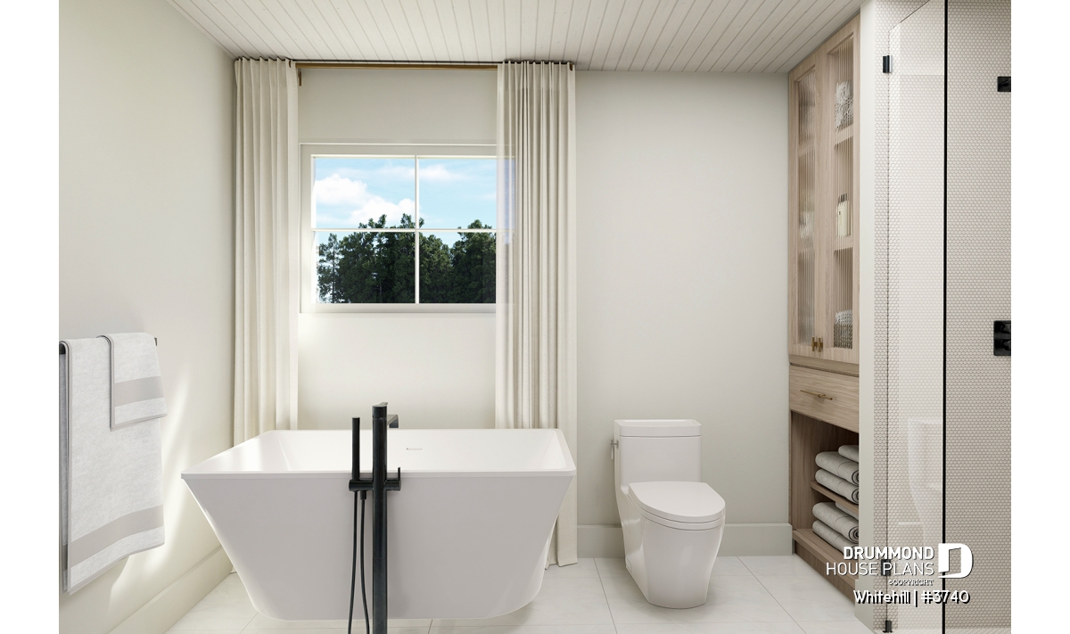 Family bathroom with separate bath and shower.