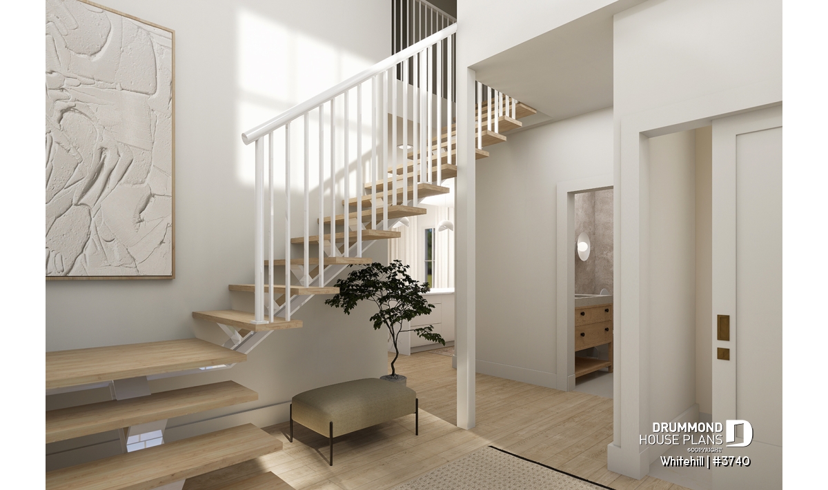 Front entrance open on two floors with 18'-6'' ceiling.