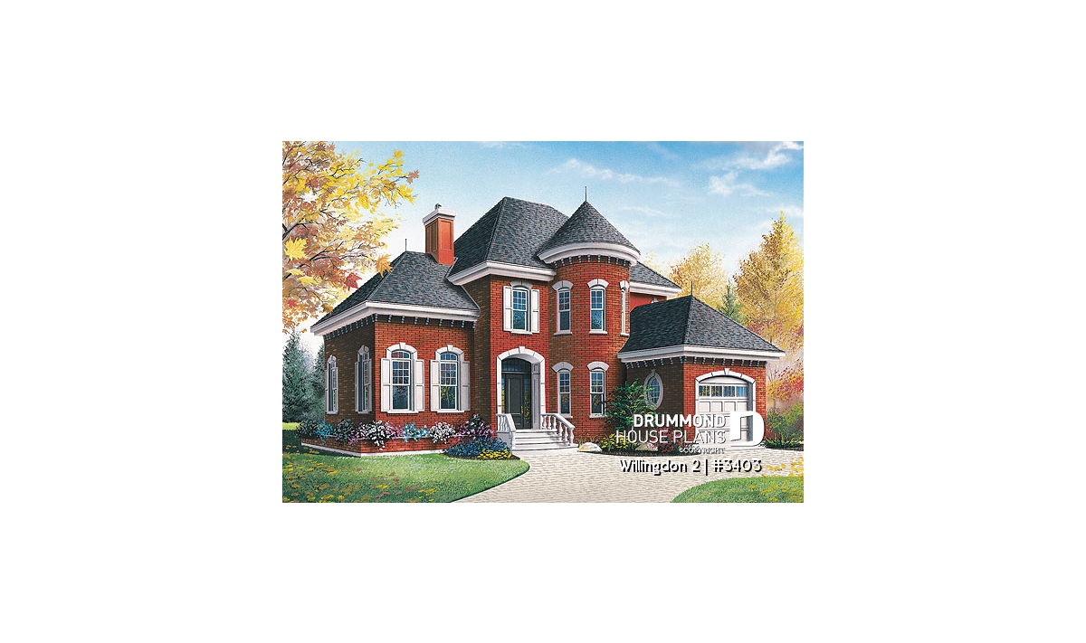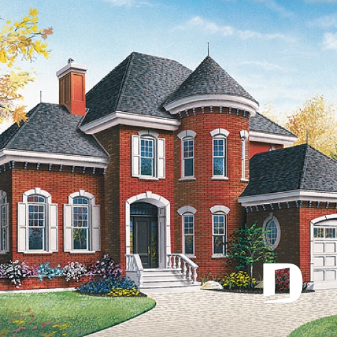 Inspired by the architectural elements of the grand manors including brickwork on the ledges, the turret on the main façade, a recessed main entrance and lateral panels and balusters on the front porch. This model generated a lot of interest from the moment it appeared on our Internet site and in our magazines.