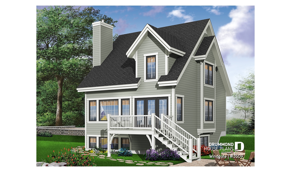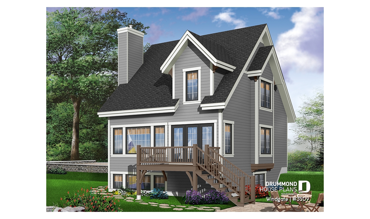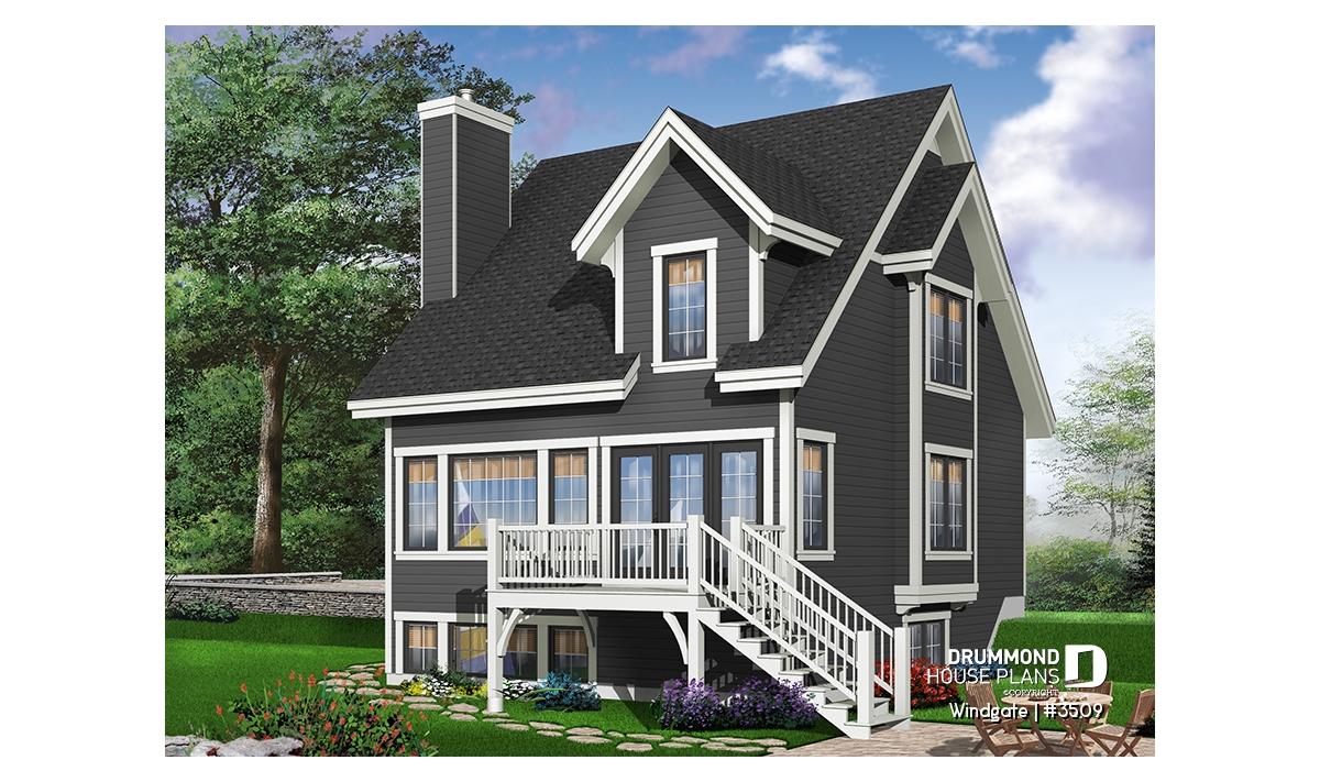 Panoramic view assured with plenty of windows at rear. Excellent location for fireplace in the family room. Three lovely bedrooms on second level.