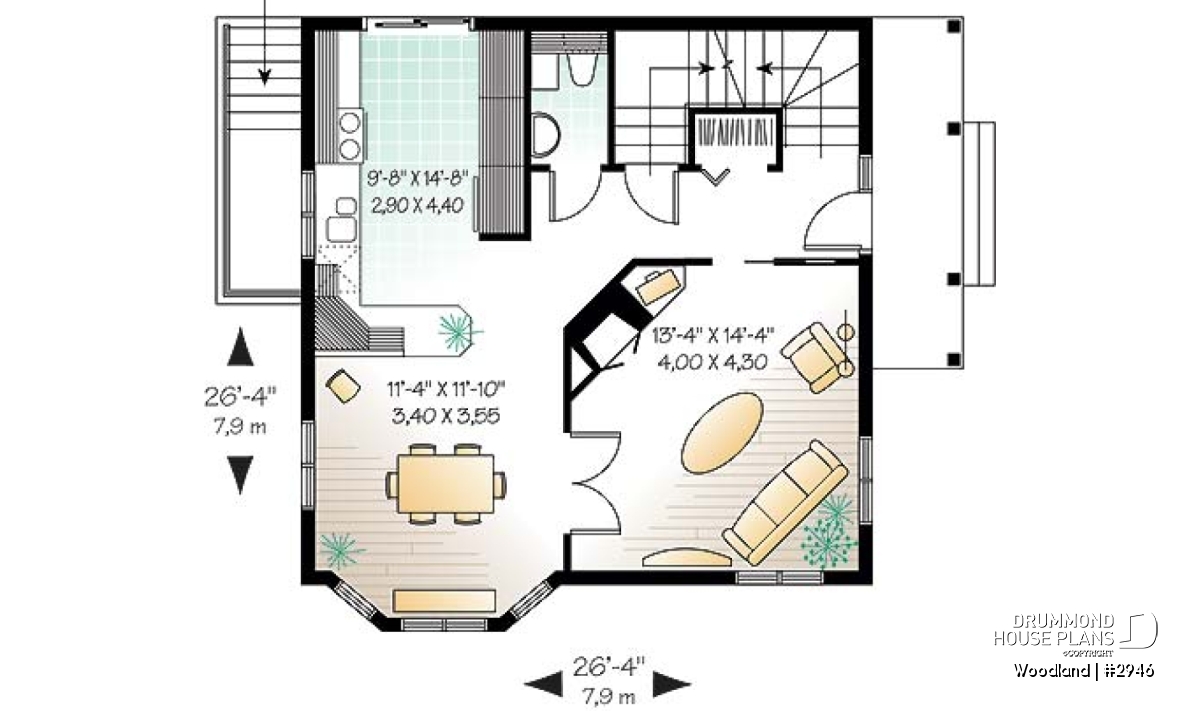 Access to basement from exterior, Fireplace, Lunch counter, Mezzanine, Cathedral ceiling