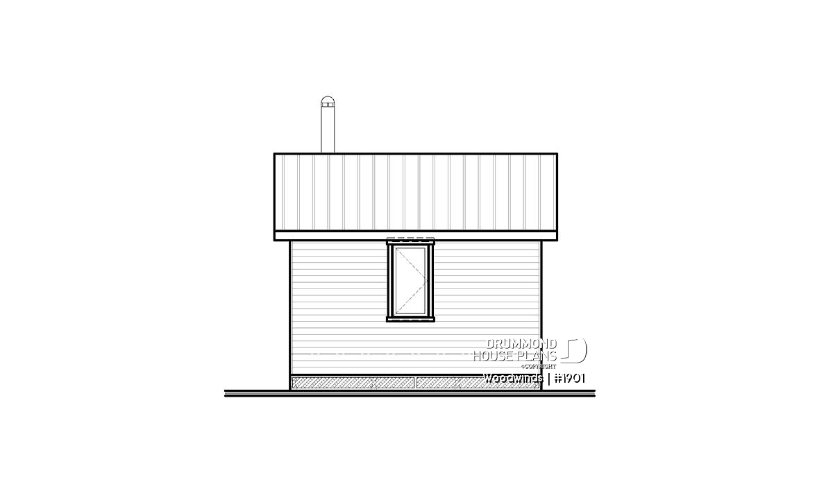 Small 1 bedroom cabin house plan, 1 shower room, options for 3 or 4-season included, wood stove