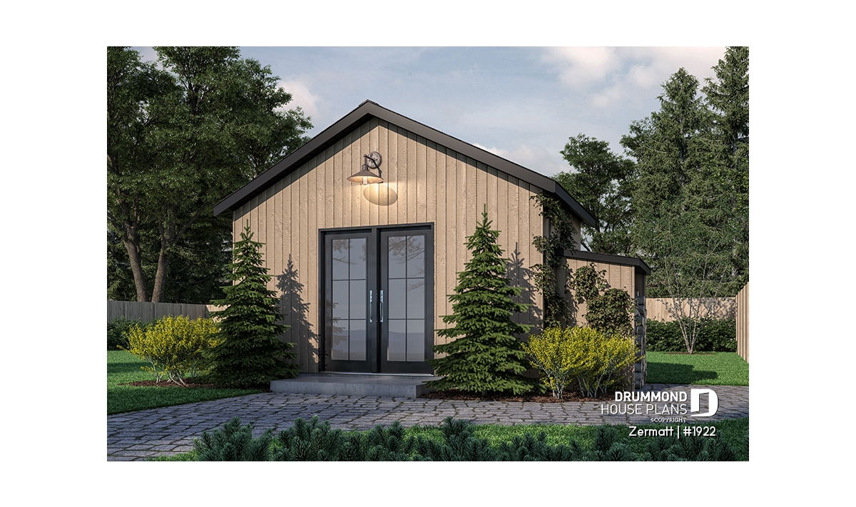 This shed plan is available in various architectural styles.
