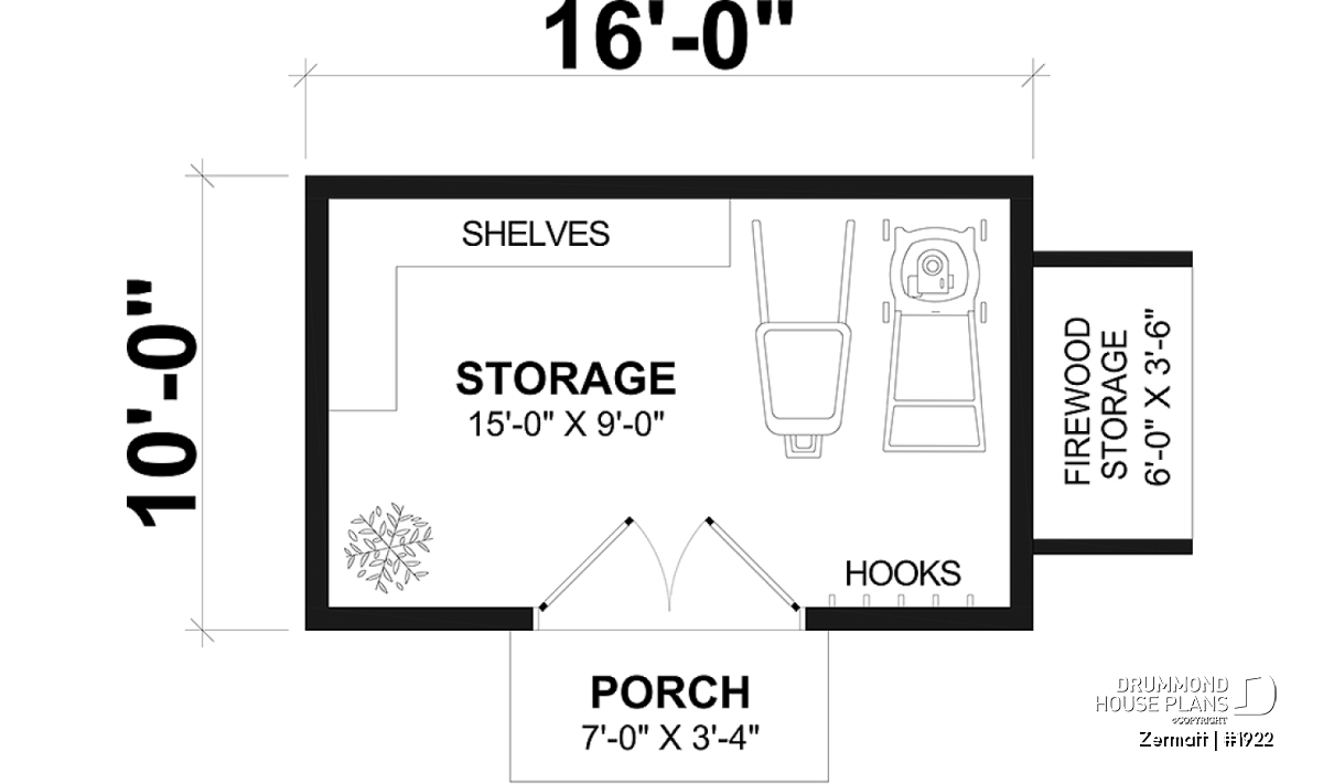 Stylish and simple shed plan with shelf and log storage areas